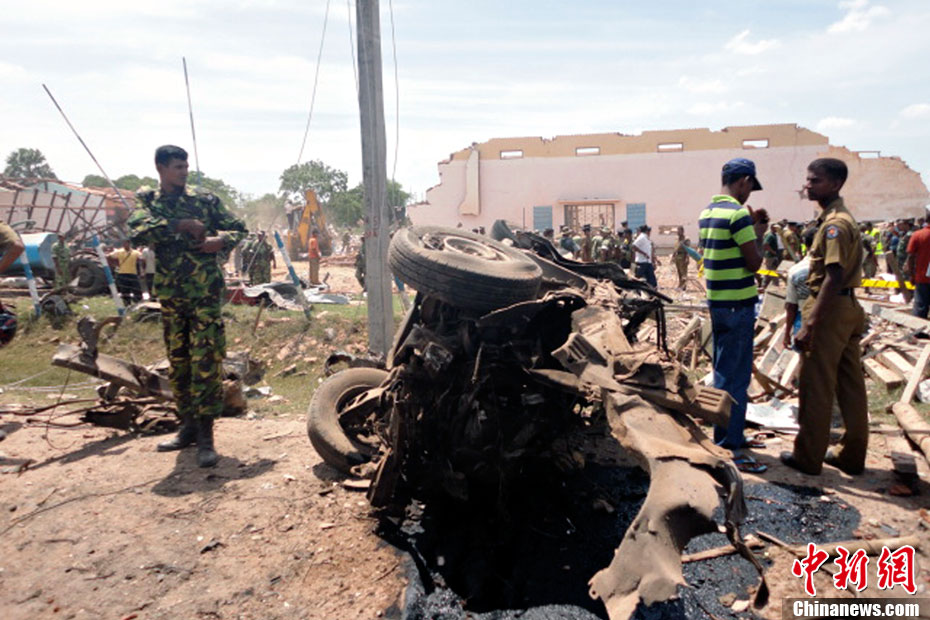 9月17日,斯里蘭卡東部拜蒂克洛鎮(zhèn)一個(gè)警察局當(dāng)天發(fā)生爆炸,造成包括兩名中國工人在內(nèi)的數(shù)十人死亡。圖為斯里蘭卡警方調(diào)查爆炸現(xiàn)場(chǎng)。