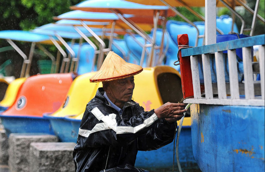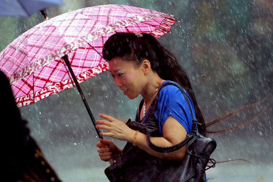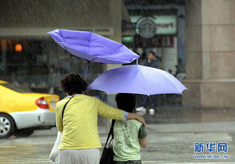 9月19日上午,臺北市民冒雨外出。當日上午8時40分,超強臺風“凡亞比”從臺灣花蓮縣豐濱鄉登陸,目前暴風圈已籠罩臺灣各地,且風雨在持續增強中。圖片來源:新華網 吳景騰 攝