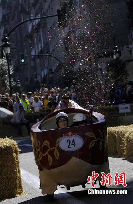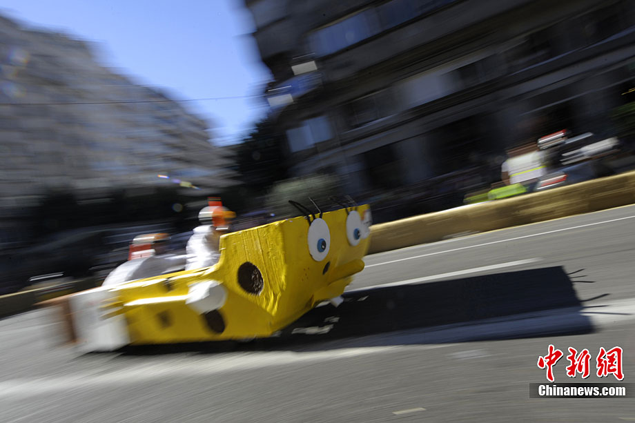 當地時間9月19日,西班牙西北部城市維哥迎來了一場別開場面的無動力小車大賽。參賽選手各自設計制作的參賽車輛,迎得了人們的掌聲。