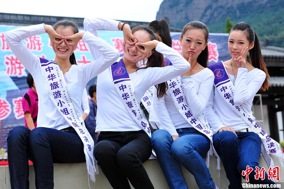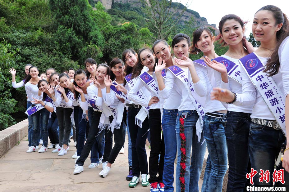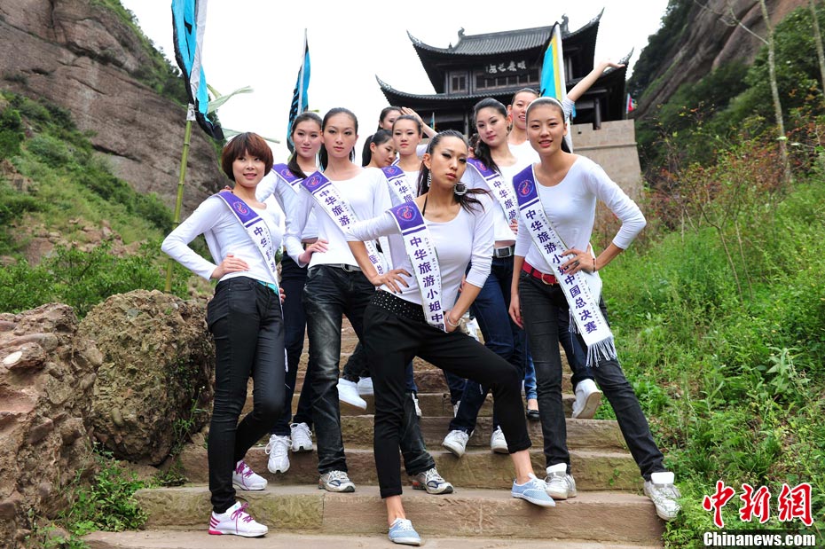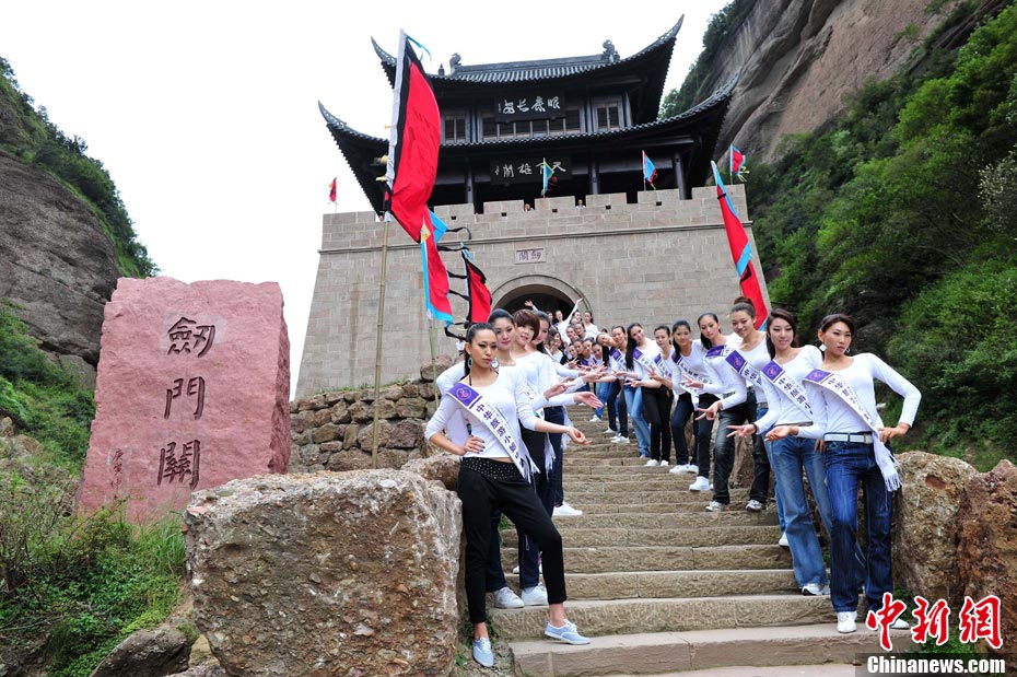 9月23日,2010中華旅游小姐中國總決賽暨劍門關旅游形象大使全國選拔賽在四川省劍閣縣正式開賽。來自全國各省區的40名佳麗同登劍門關,用美麗的身姿為這座千年蜀道雄關增添了靚麗的風景線。中新社記者 李學仕 攝