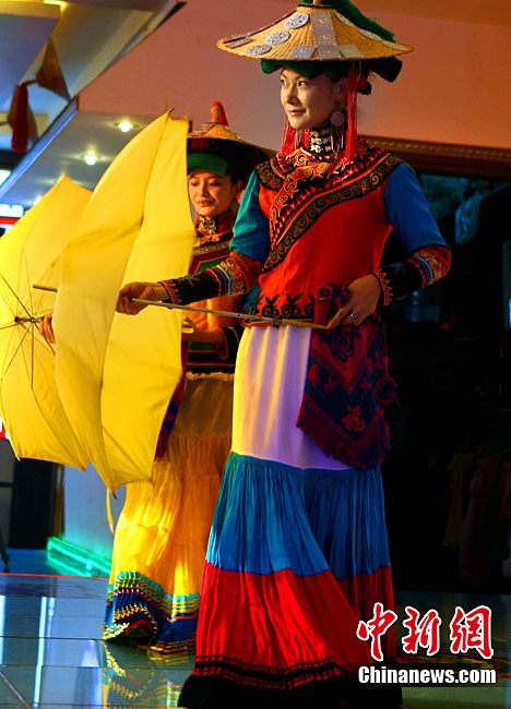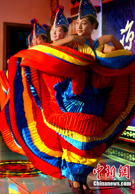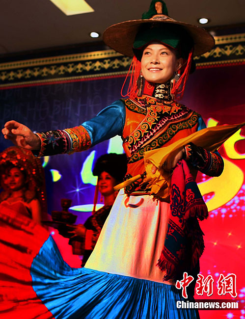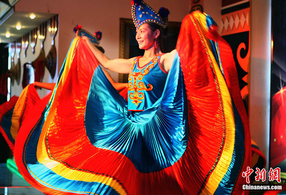 西昌市一家彝族特色餐館,9月29日表演民族舞蹈、展示民族服飾,表達(dá)民族情懷,祝福中國第二顆繞月探測衛(wèi)星——“嫦娥二號”圓滿升空。據(jù)悉,“嫦娥二號”任務(wù)擬定于9月30日開始加注火箭推進(jìn)劑,10月1日至3日擇機(jī)實(shí)施衛(wèi)星發(fā)射。中新社記者 宋吉河 攝