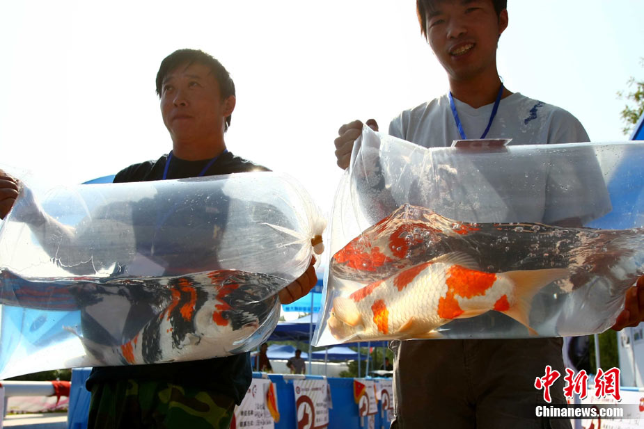 9月30日,2010北京·金魚錦鯉大賽在北京朝陽公園拉開帷幕,本次大賽是首次全國性的金魚錦鯉大賽,北京、天津、廣州等10余個省市65個組織(協會、學會、俱樂部、企業)參加了金魚10個組別、錦鯉7個部別共89個獎項的角逐。中新社記者 富田 攝