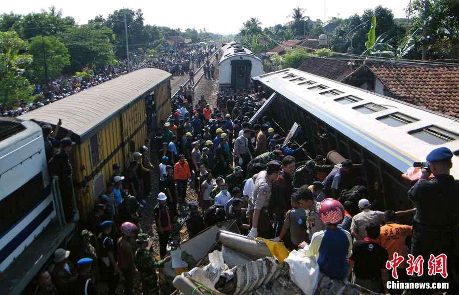 印尼中爪哇省2號(hào)發(fā)生火車相撞事故,至少已造成33人死亡。 事發(fā)在中爪哇北岸的珀塔魯坎,一列行駛中的列車,于凌晨約3點(diǎn)鐘,撞向一列停在車站內(nèi)的列車,當(dāng)時(shí)大部分人都在睡眠中,因此事故造成嚴(yán)重傷亡。