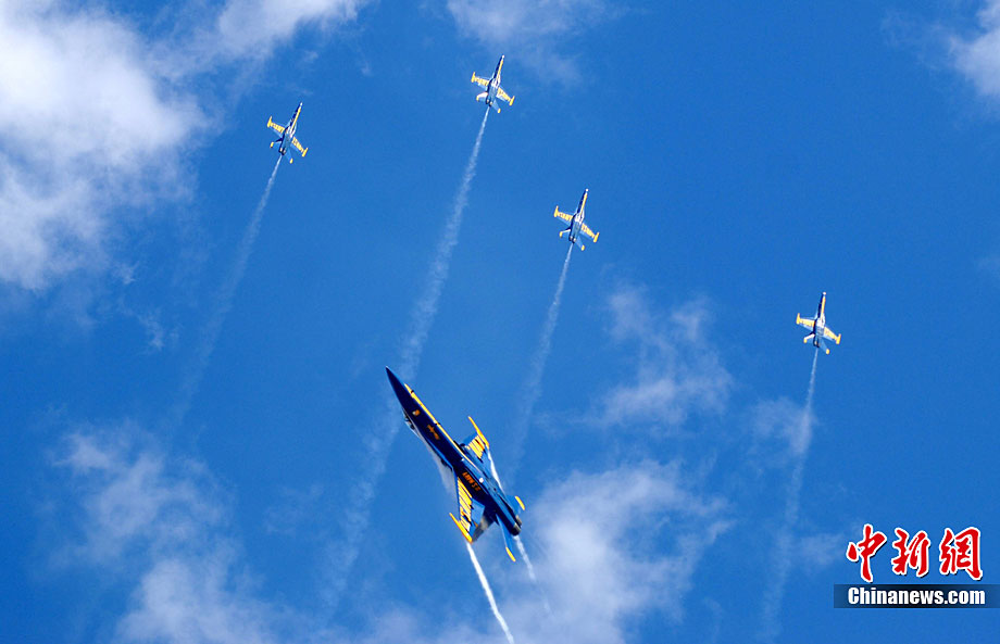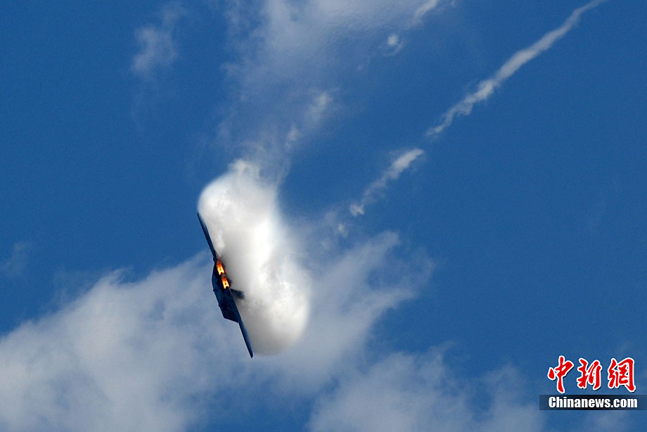 當地時間10月3日,美國著名的密拉瑪航空展在加州密拉瑪海軍陸戰隊航空基地舉行。三天的航空展示和飛行表演吸引了近70萬人次參觀。圖為美軍最先進的F-22猛禽戰機空中英姿。中新社發 張煒 攝