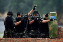 10月8日,中國、泰國兩軍特種部隊“突擊—2010”反恐聯合訓練在廣西桂林拉開帷幕,這是兩國之間舉行的第三次陸軍聯合訓練。分析人士指出,這次聯訓將進一步鞏固兩軍關系,提高聯合反恐作戰能力,利于維護地區和平穩定。此次聯訓為期15天,這是中泰兩國陸軍首次就城市反恐課題開展聯訓。圖為兩軍官兵互相參觀武器裝備!≈行律缬浾 杜洋 攝