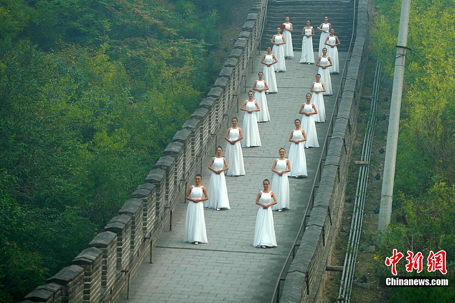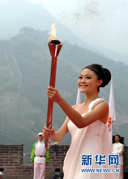 北京時間10月9日上午10時26分,2010年廣州亞運會圣火在有“天下第一雄關”的北京居庸關長城北關烽火臺成功點燃。中新社記者 王歡 攝