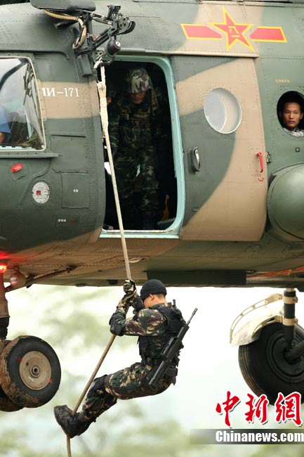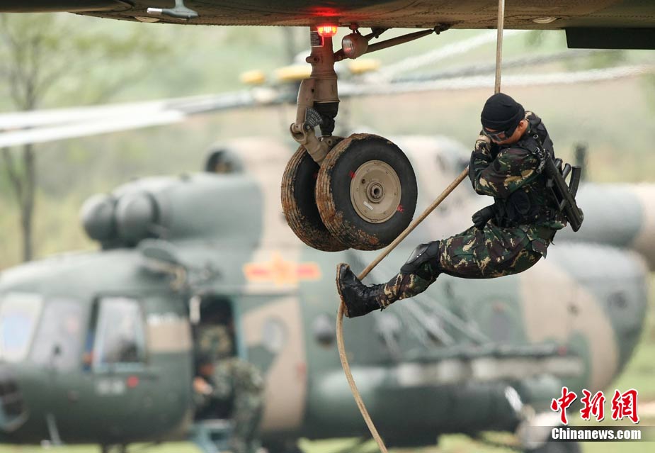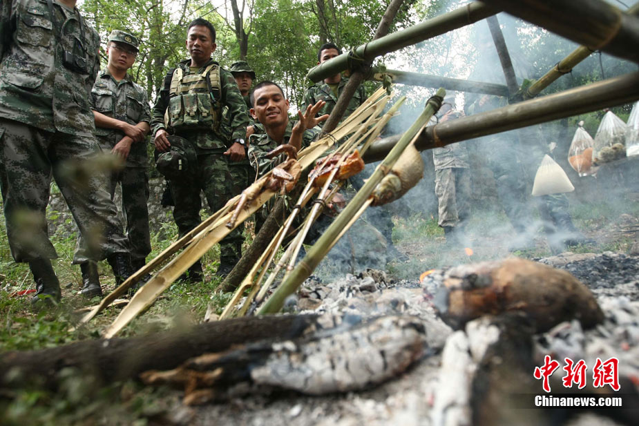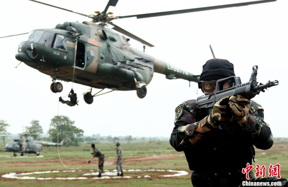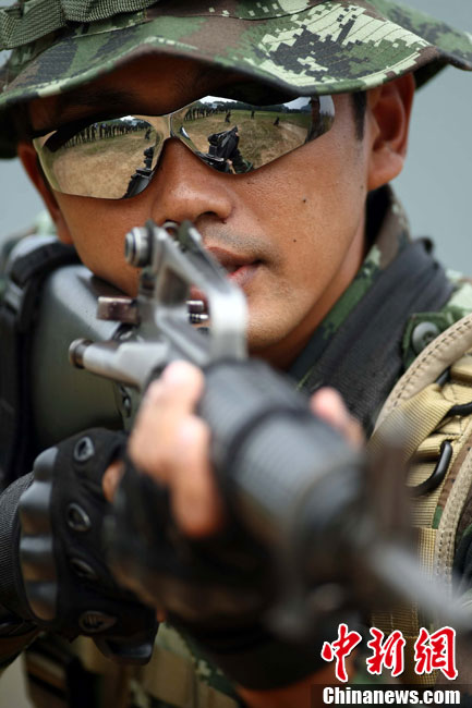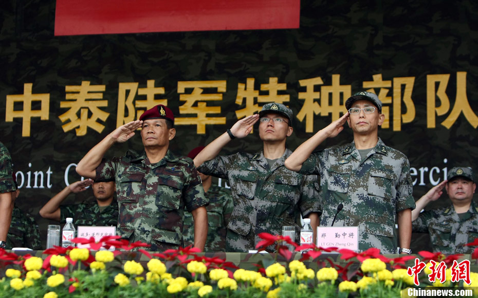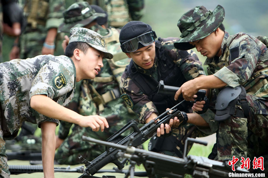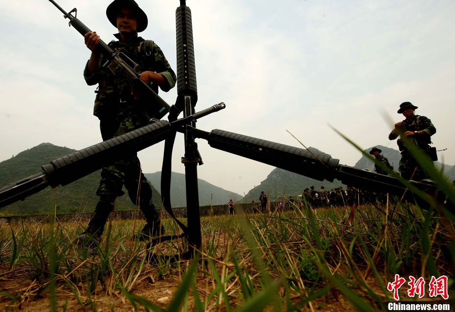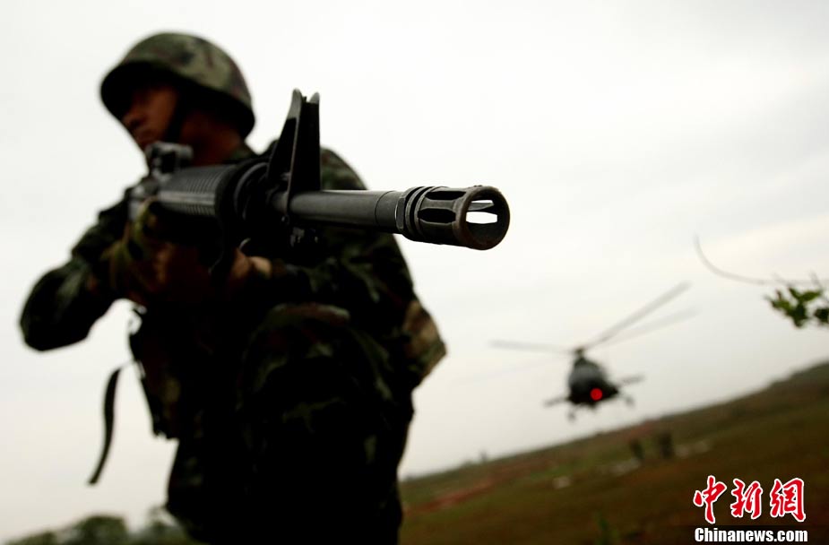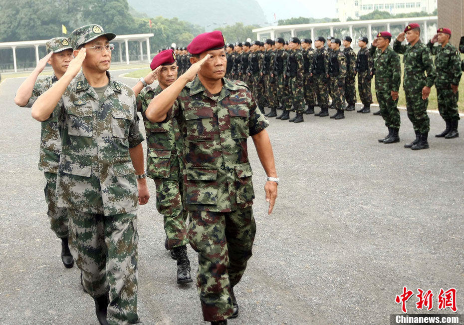 10月9日,中泰陸軍特種部隊反恐聯合訓練進入混編同訓階段,主要圍繞城市反恐基礎技能訓練、混編分隊戰術訓練等科目進行。圖為兩軍士兵進行槍械技能比賽。中新社記者 杜洋 攝