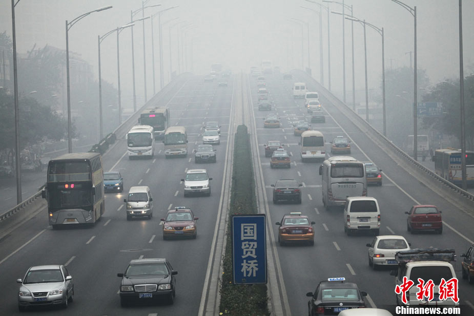 10月10日上午,北京東三環(huán)國貿(mào)橋被大霧籠罩。當(dāng)日,持續(xù)的大霧再度襲擊北京城,中央氣象臺10月10日06時繼續(xù)發(fā)布大霧藍(lán)色預(yù)警。中新社發(fā) 馬毅行 攝 圖片來源:CNSPHOTO