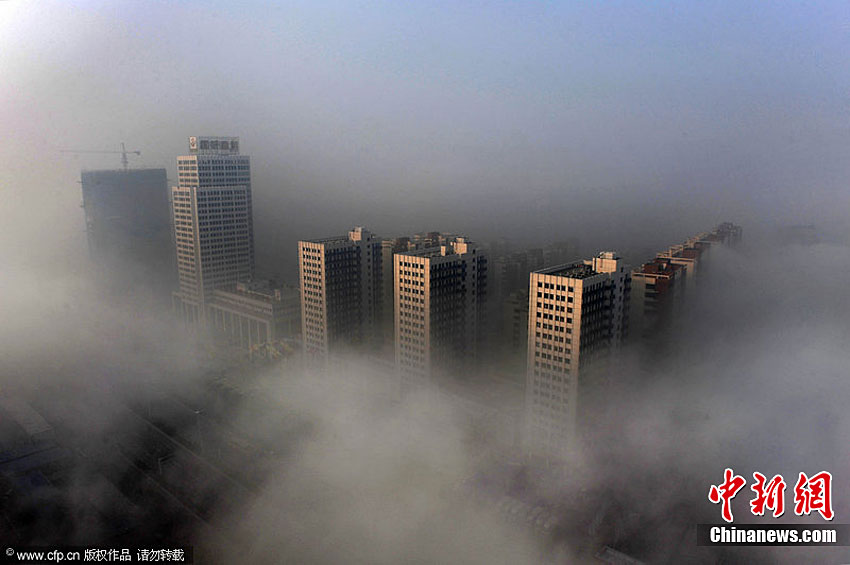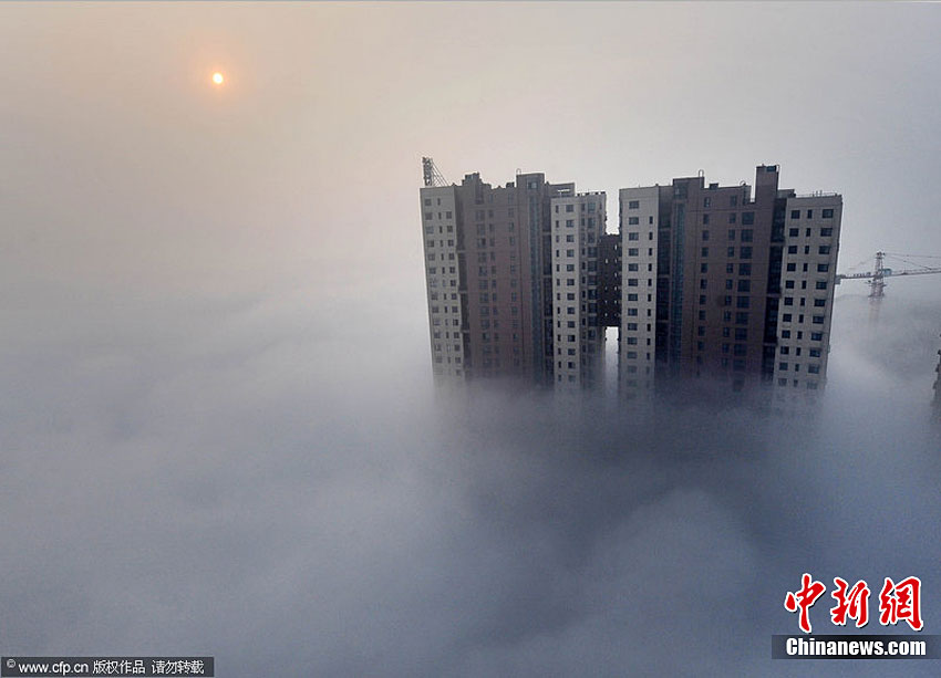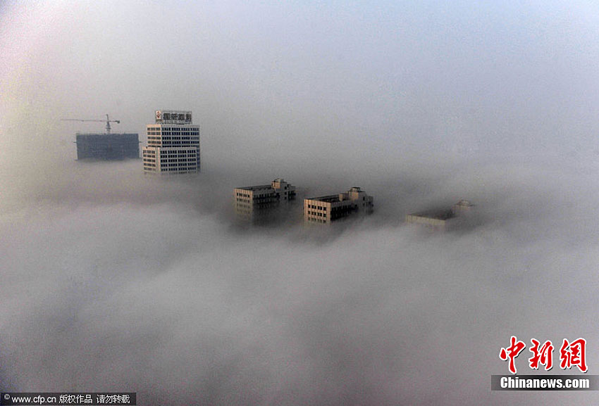 10月9日早上6點多,一場罕見的“平流霧”襲擊合肥。合肥城市的建筑掩映在濃霧中異常壯觀。王長豐 攝 圖片來源:CFP視覺中國