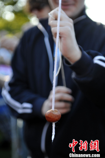 10月10日,英國北安普敦郡昂德爾,傳統(tǒng)的的2010世界板栗競標(biāo)賽在此舉行。參賽選手要用自己手中的板栗設(shè)法擊碎對方的板栗,比賽結(jié)果按照擊碎對方板栗數(shù)量計(jì)算。這項(xiàng)比賽開始于1965年。