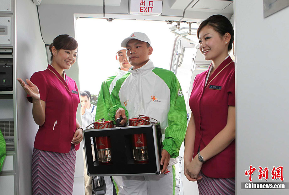 10月12日上午,廣州亞運會火炬點燃暨傳遞啟動儀式在北京天壇祈年殿南廣場舉行。10點17分,中共中央總書記、國家主席胡錦濤點燃主火炬。 中新社記者 沈晨 攝