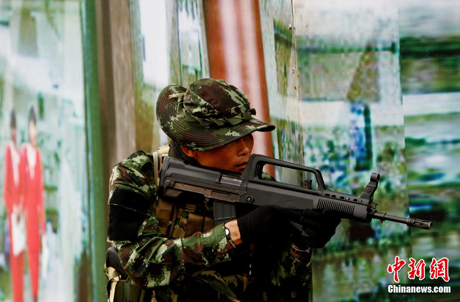 10月15日,在廣西桂林舉行中泰特種部隊反恐聯訓進行城市街道搜索實彈射擊。此次聯訓為期15天,這是中泰兩國陸軍首次就城市反恐課題開展聯訓。中新社記者 杜洋 攝