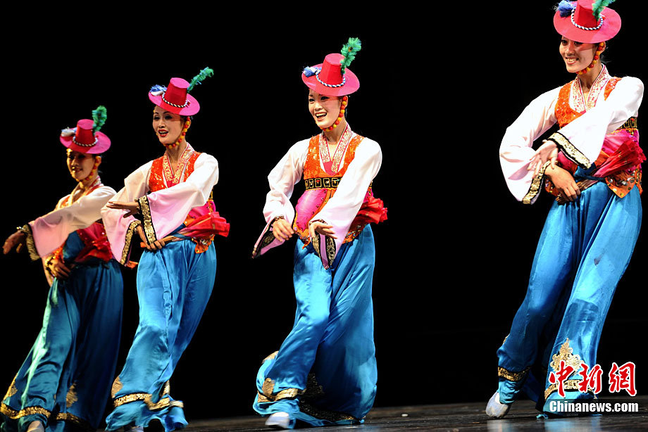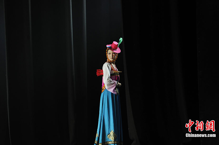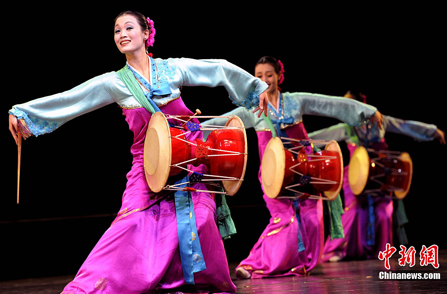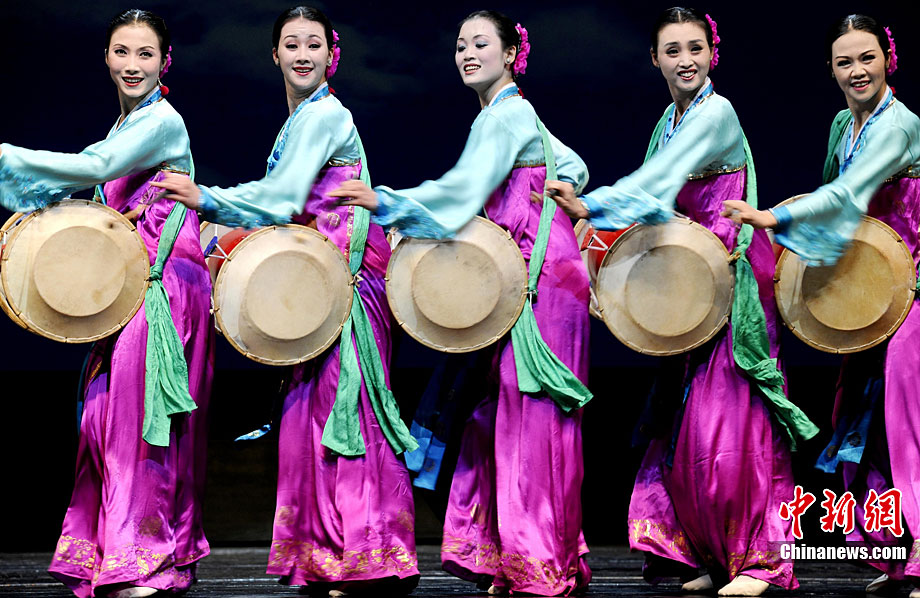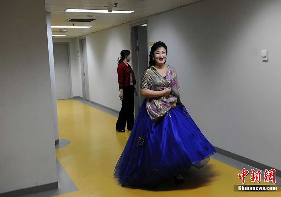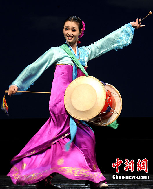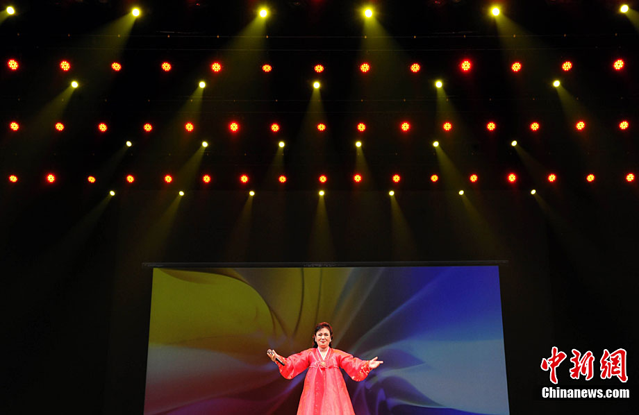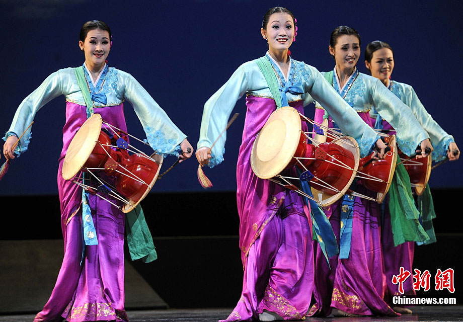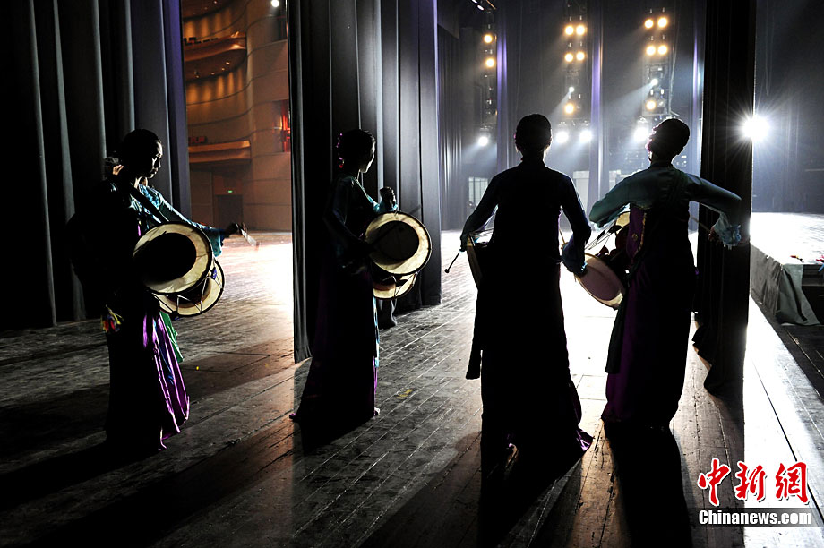 10月22日晚,朝鮮平壤藝術團在國家大劇院進行彩排。10月23至24日,朝鮮平壤藝術團將在北京國家大劇院歌劇院上演歌舞晚會《怒放的金達萊》。此次來訪的朝鮮平壤藝術團,是朝鮮政府專門為參加上海世博會朝鮮館日組建的表演團體,該團成員來自朝鮮最重要的三大藝術團體:萬壽臺藝術團、血海藝術團和朝鮮民族國立藝術團,參演人員薈萃了朝鮮最優秀的藝術家。演員們將身著獨具特色的民族服飾,表演《長鼓舞》、《拾貝姑娘》、《鈴鐺舞》、《三人舞》等傳統舞蹈。中新社記者 劉震 攝