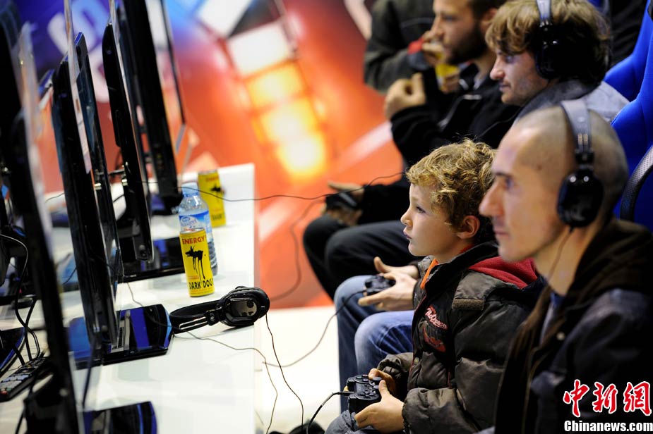 10月27日,在法國巴黎舉行的“電子游戲周”上,眾多電玩愛好者在體驗大廳里盡情享受游戲的世界。