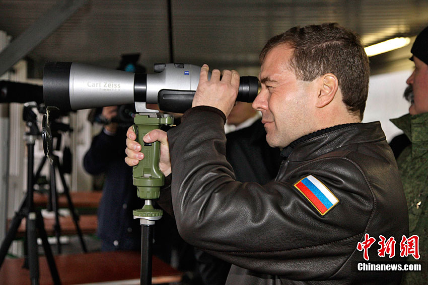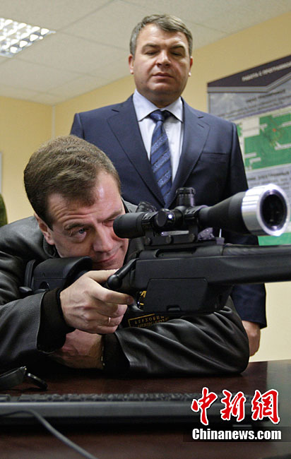 俄總統梅德韋杰夫端槍瞄準 “跟風”普京扮硬漢