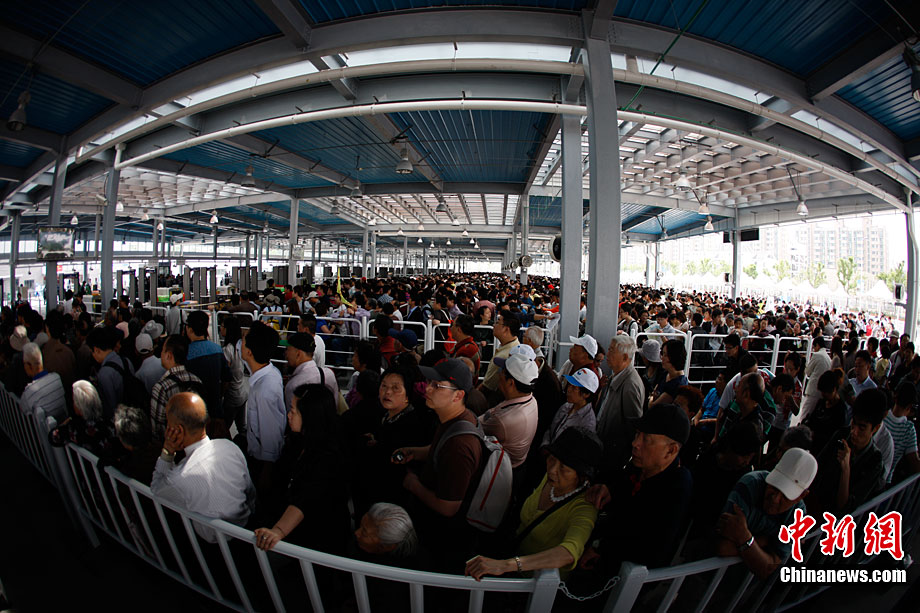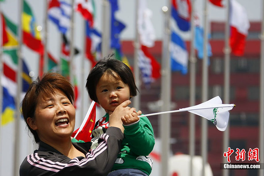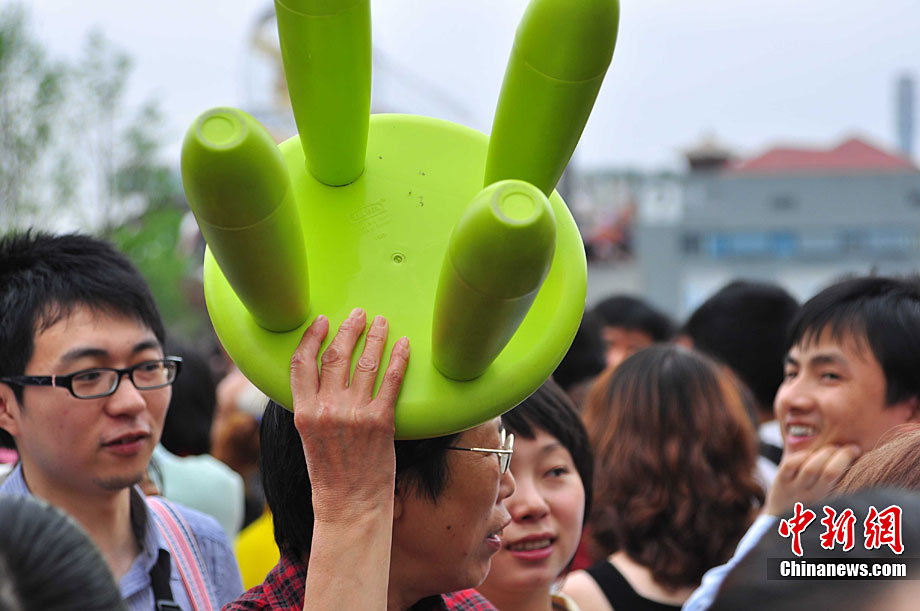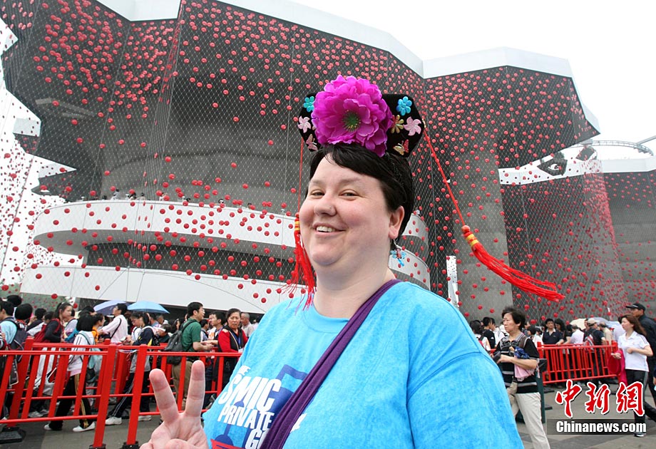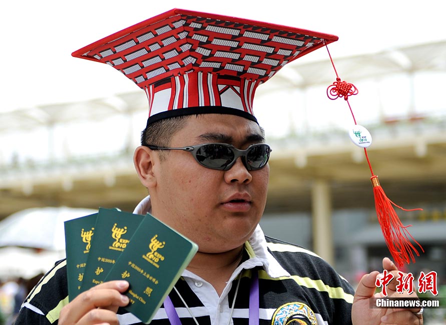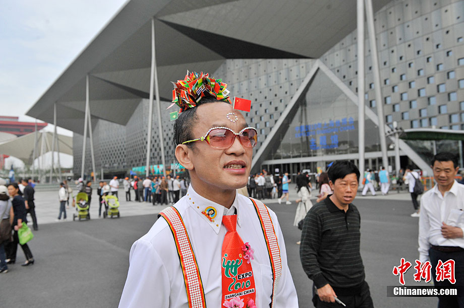 4月30日,世博會大幕即將拉開,一個來自河南的剃著“世博頭”的游客在園區(qū)門外吸引了路人。這位小伙子稱,他的“世博頭”是一位四川來的姑娘免費為他理的,他們互相不認識,都是來看世博會,等著看晚上的焰火。中新社發(fā) 王紅綱 攝