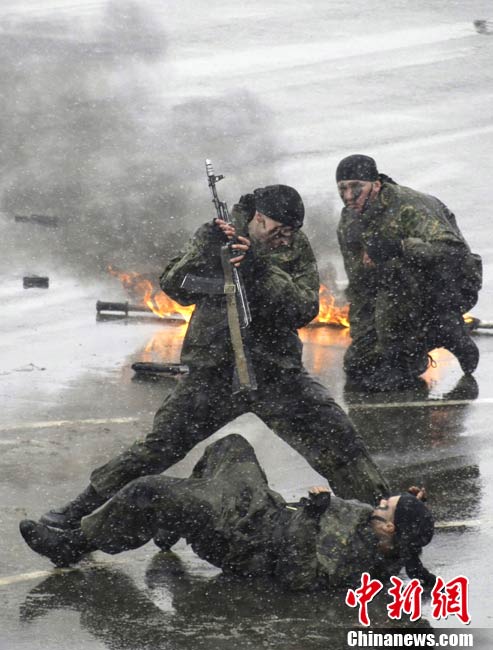 10月29日,俄羅斯莫斯科郊區,俄羅斯特警在Interpolitex-2010國際警察與防務技術展上進行示范戰術演練。