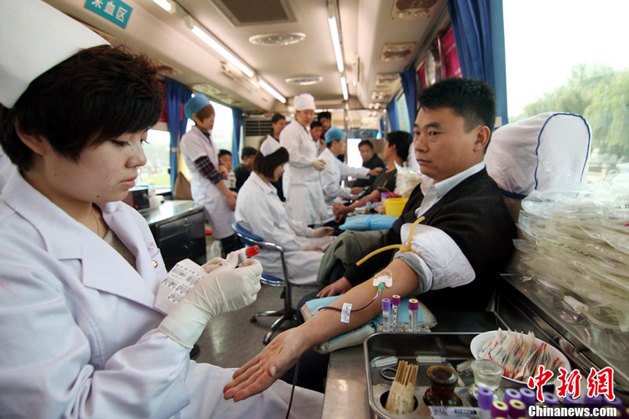 10月30日,各地市民踴躍無償獻血,應對“血荒”。圖為長春市民在義務獻血車上獻血,應對近日出現的“血荒”。圖片來源:CFP視覺中國