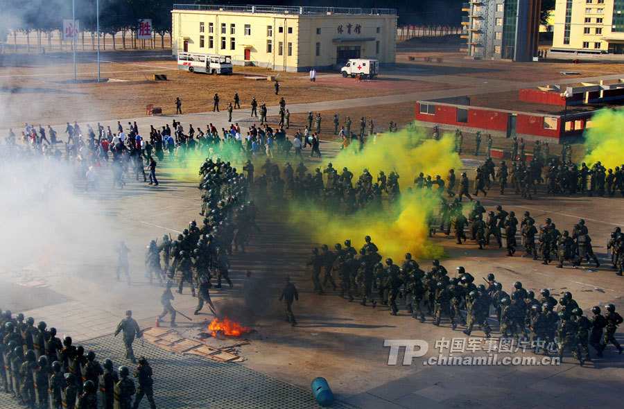 訓(xùn)練場內(nèi),喊聲陣陣,面對總隊考評組給出的各種突發(fā)情況,各機動部隊官兵手持盾牌、警棍,排成各種陣型,疾進如風,徐推如林……據(jù)介紹,此次對抗競賽時間為兩天,近6000人參考,考核、觀摩課目16類30項內(nèi)容,按照首長機關(guān)、警官、士兵、分隊編組對抗依次競賽,是武警北京總隊歷年來參考人數(shù)最多,考核課目最全的一次整編制機動部隊考核競賽。