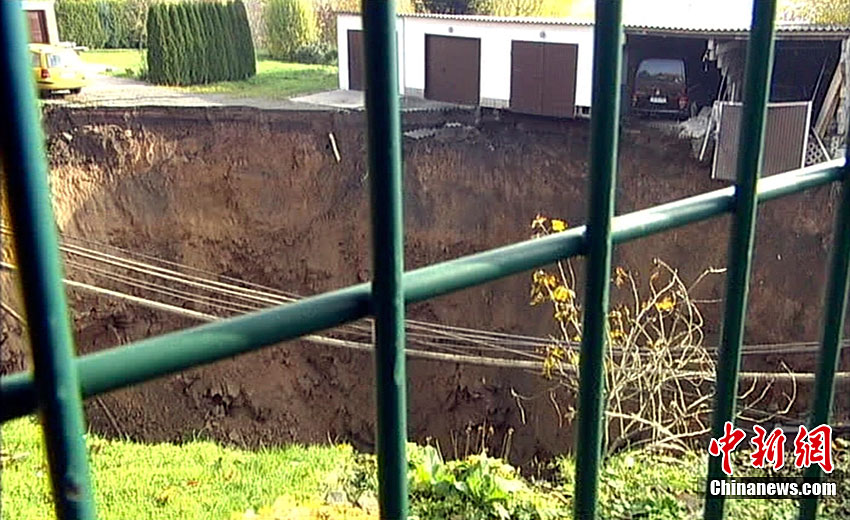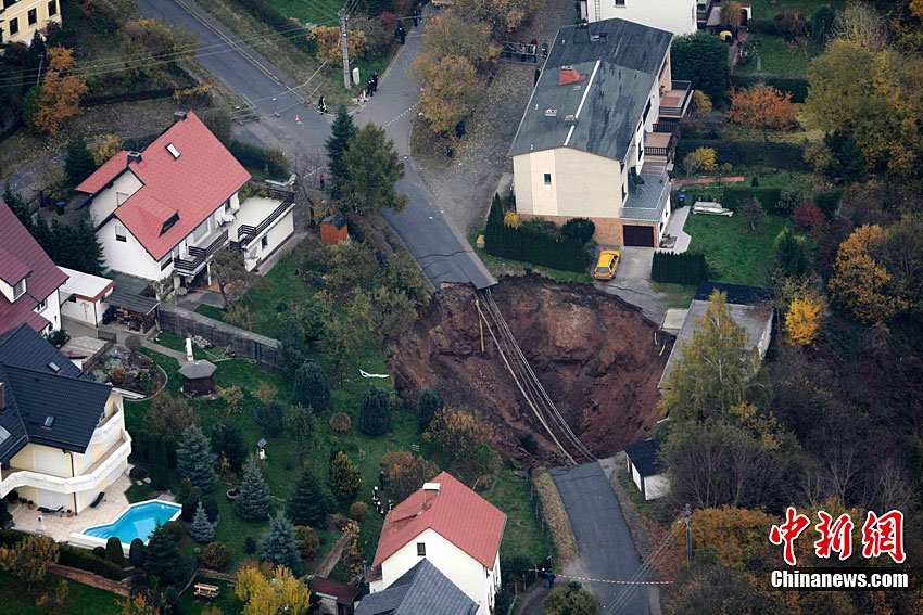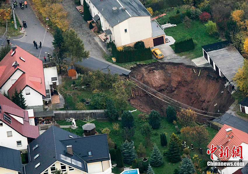 11月1日,在德國(guó)東部城鎮(zhèn)施馬爾卡爾登,車(chē)輛停在地面塌陷出現(xiàn)的坑洞旁。施馬爾卡爾登地區(qū)當(dāng)日出現(xiàn)地面塌陷情況,部分居民撤離了發(fā)生事故的地區(qū),目前無(wú)人因地面塌陷事故受傷。