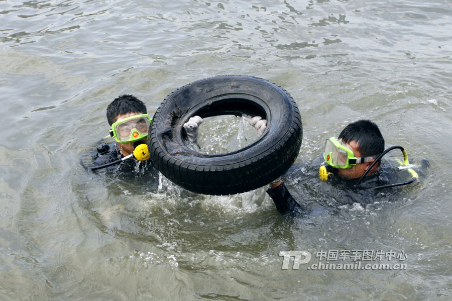 “水下就是戰場,安檢就是打仗”、“不怕流血流汗,確保水下安檢萬無一失。”這是蛙人官兵們的共同心聲。
