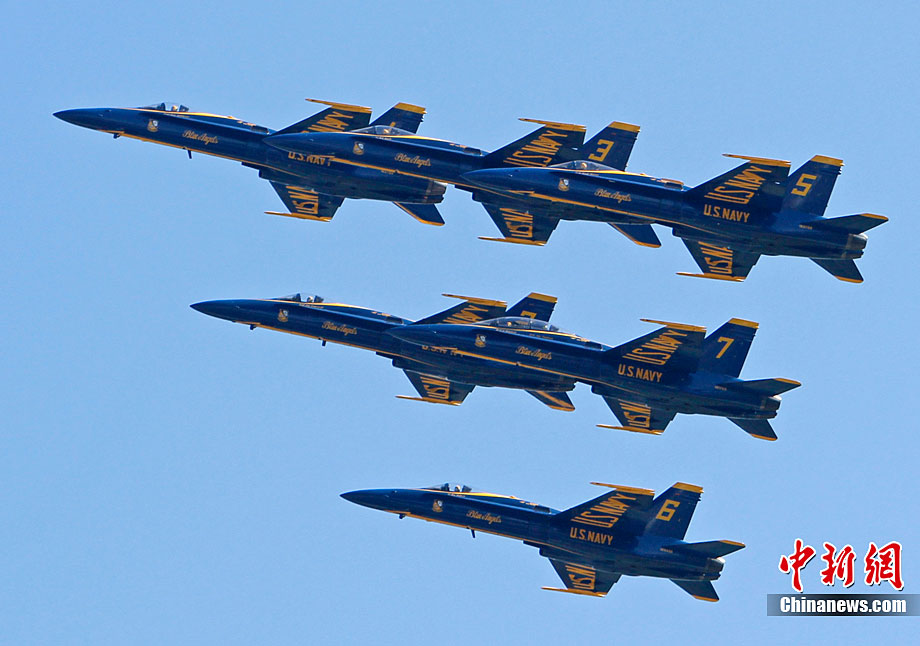 當地時間11月5日,美國邁阿密近郊的霍姆斯帝德空軍儲備基地為當地居民和游客上演了精彩絕倫航空飛行表演。世界上最優秀的特技飛行表演隊之一,同時也是目前世界上唯一一支屬于海軍航空兵的飛行表演隊--美國海軍“藍天使”飛行表演隊駕駛f/a-18“大黃蜂”戰斗機,翱翔藍天,上演令人驚嘆,眼花繚亂的空中特技。