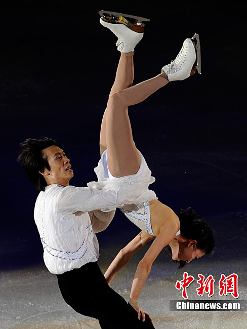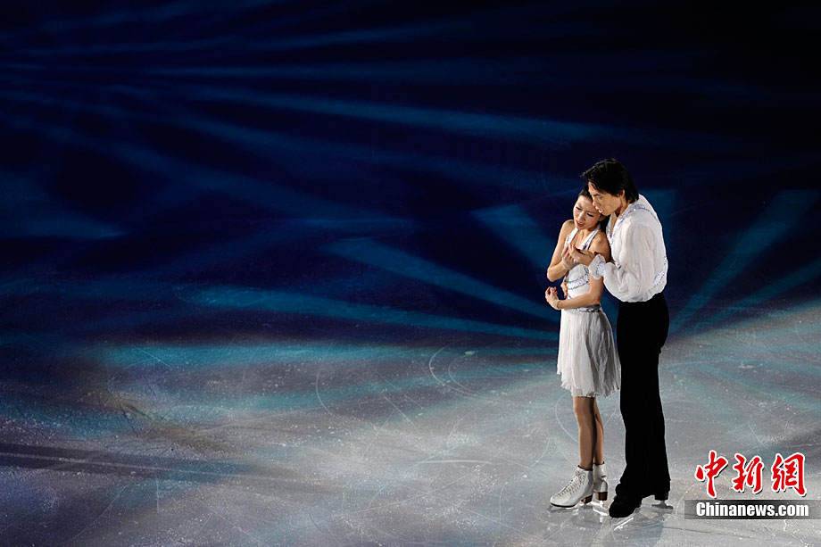 11月7日,2010年中國杯世界花樣滑冰大獎賽答謝表演在北京首都體育館進行,所有參賽運動員為觀眾奉獻上了一場美輪美奐的冰上舞蹈盛宴。中新社記者 富田 攝