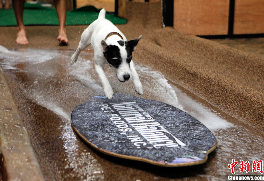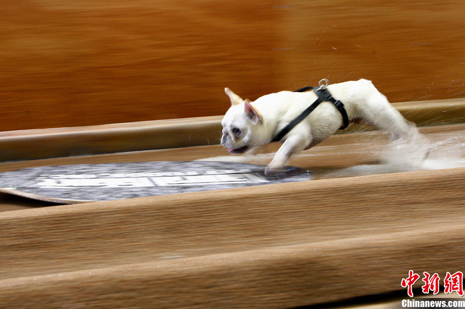 11月8日,在美國洛杉磯舉行了一場別開生面的狗狗滑水大賽,參賽的可愛狗狗們在“賽道”上展現滑水“絕技”。