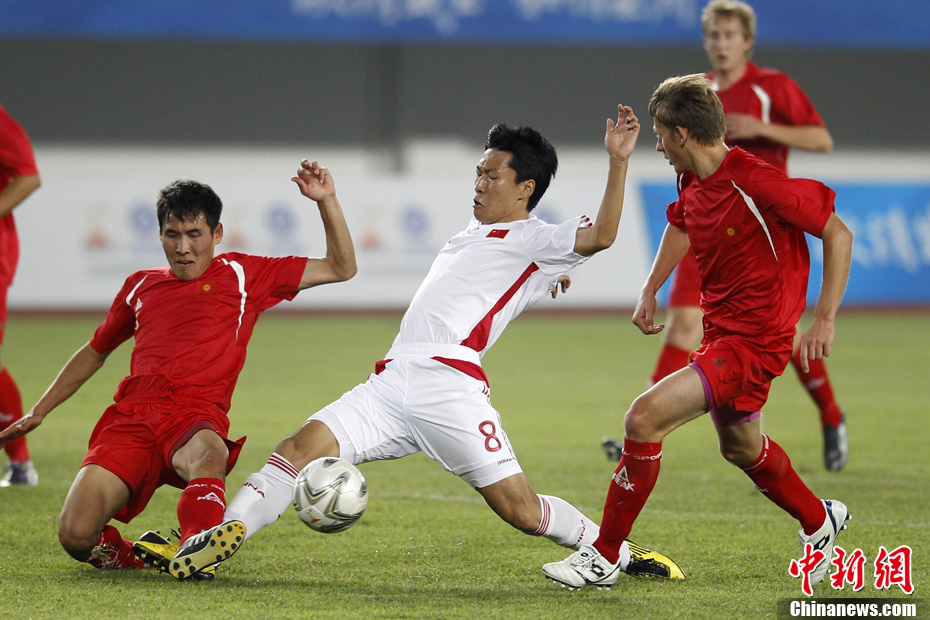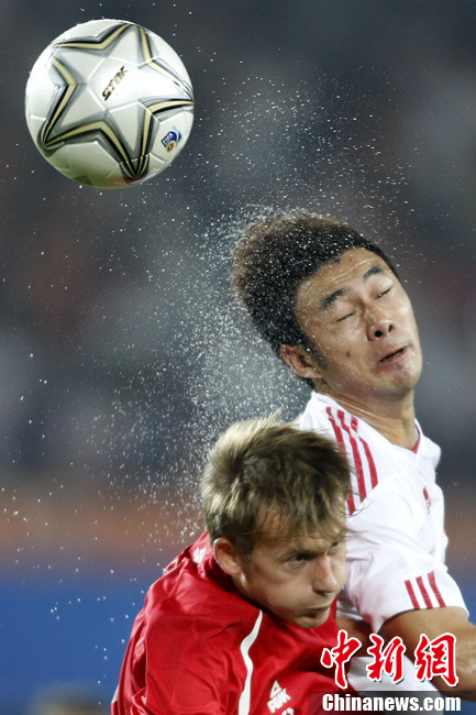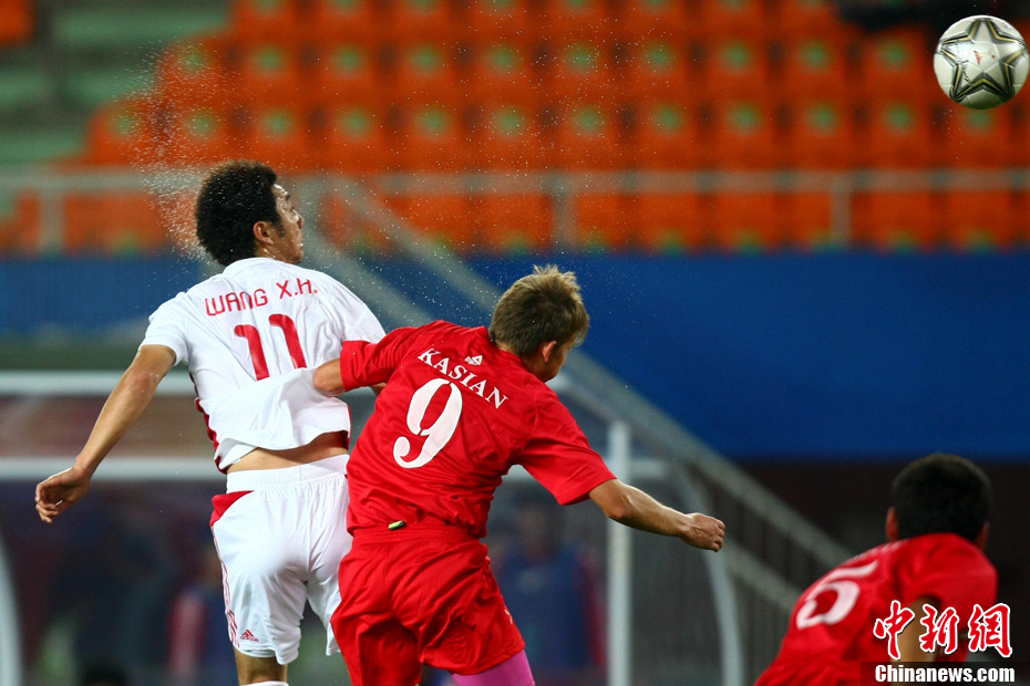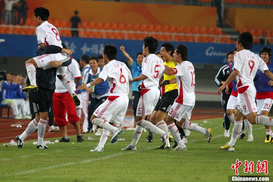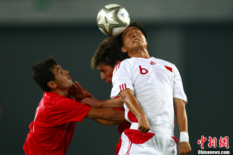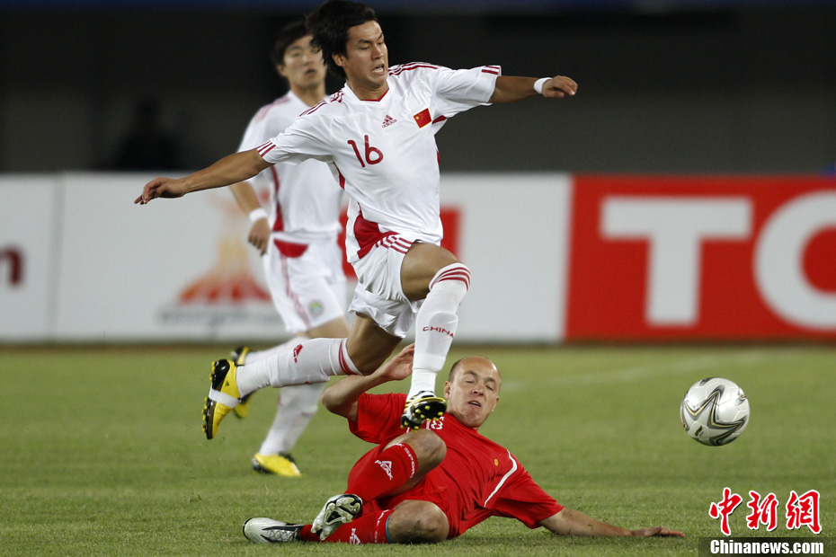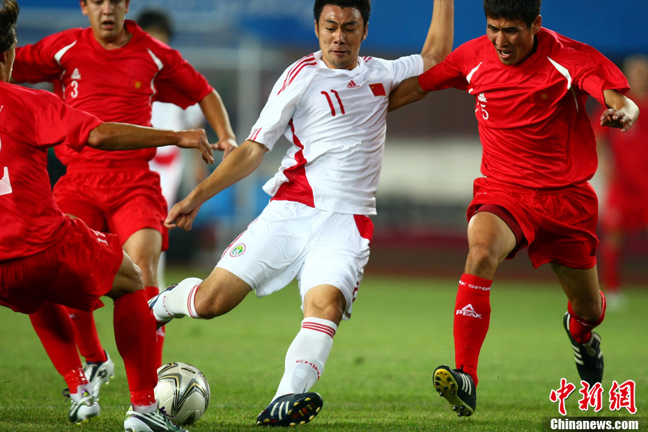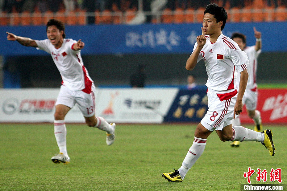 11月10日晚,廣州亞運會男子足球小組賽A組第19場中國與吉爾吉斯斯坦的比賽在廣州天河體育場進行,最終中國隊2:1戰勝吉爾吉斯斯坦隊。中新社記者 富田 攝