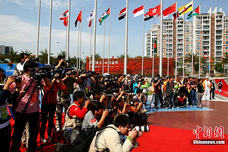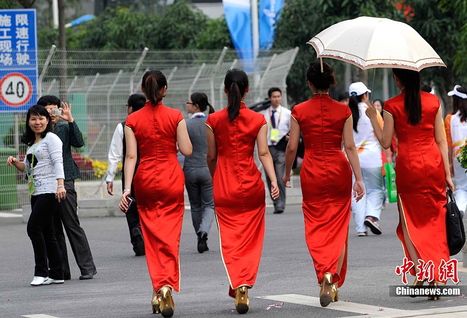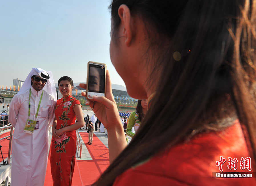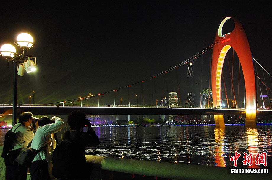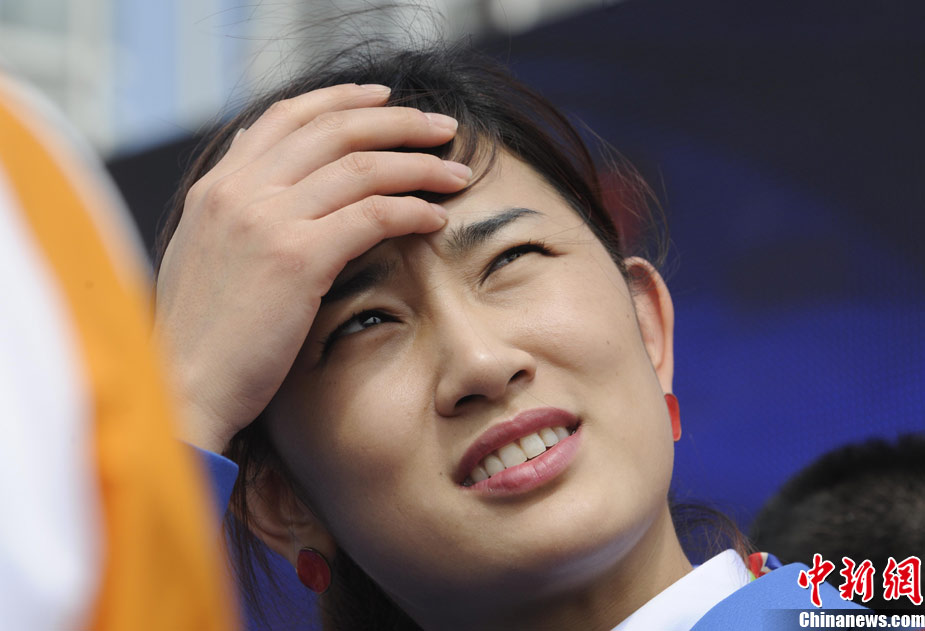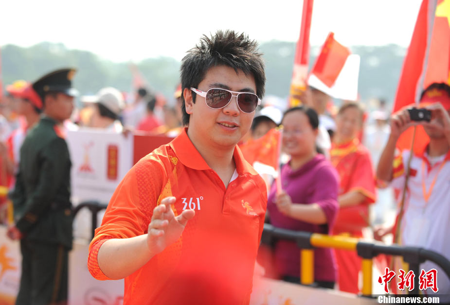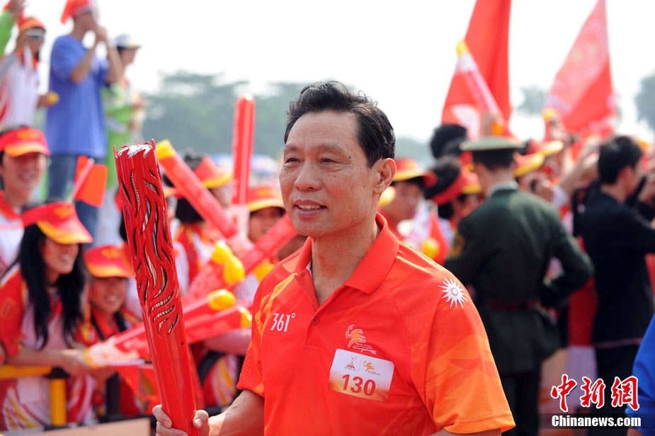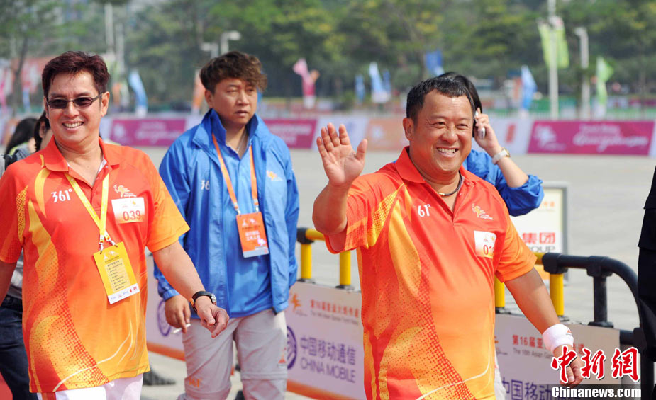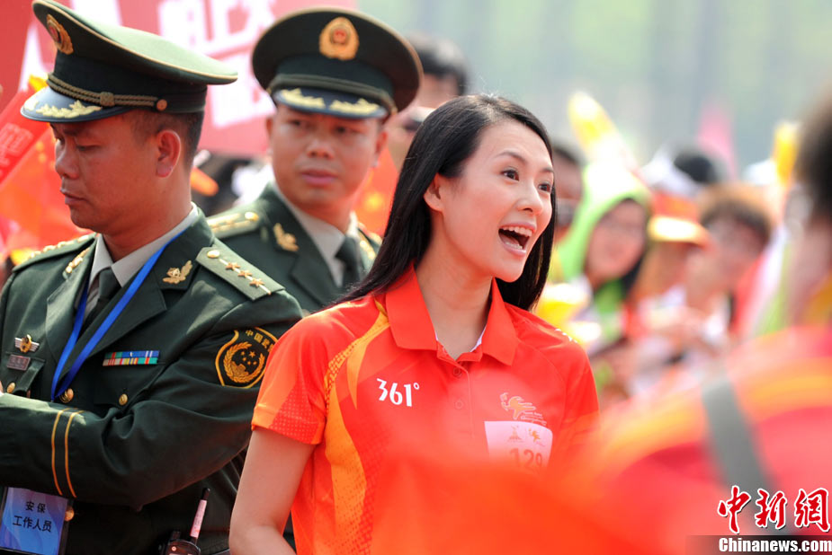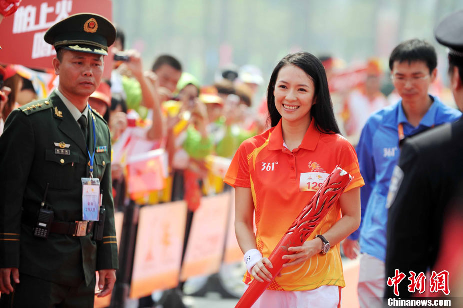 11月11日,著名影星章子怡在廣州大學城參加亞運火炬傳遞。中新社記者 陳文 攝