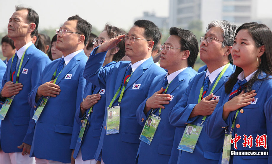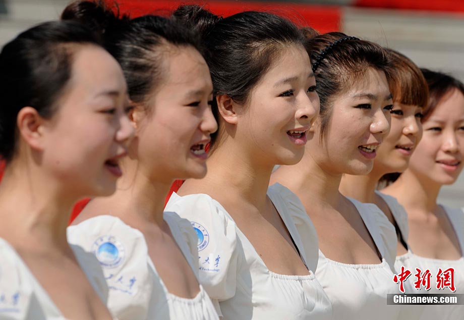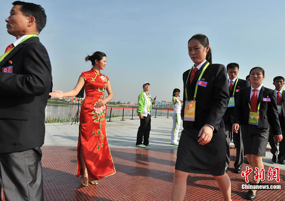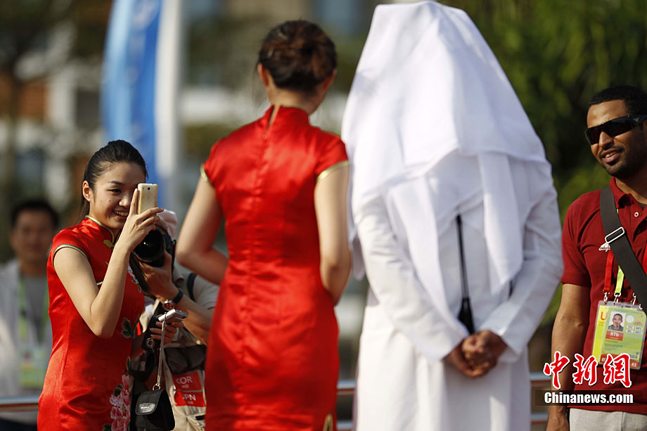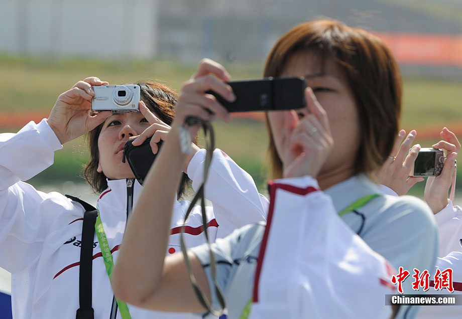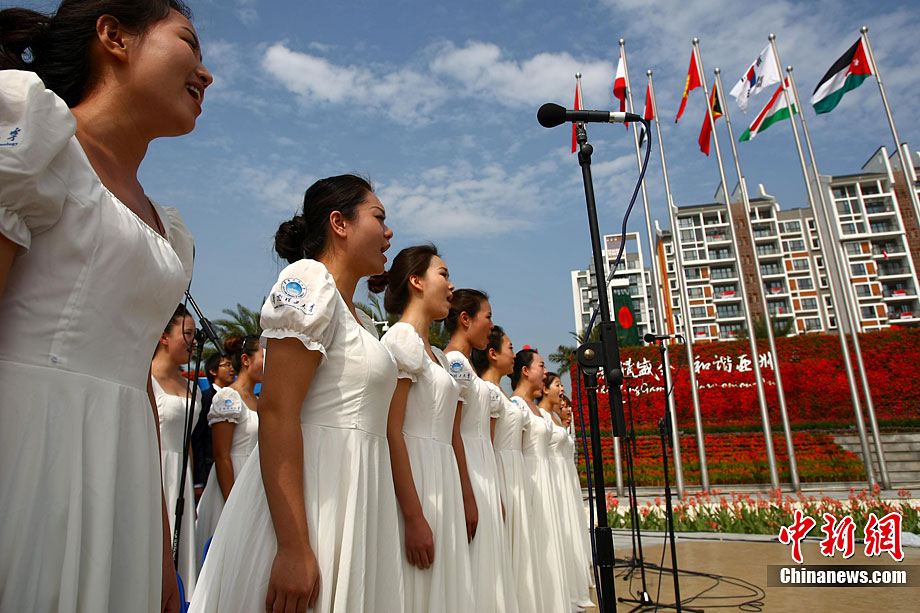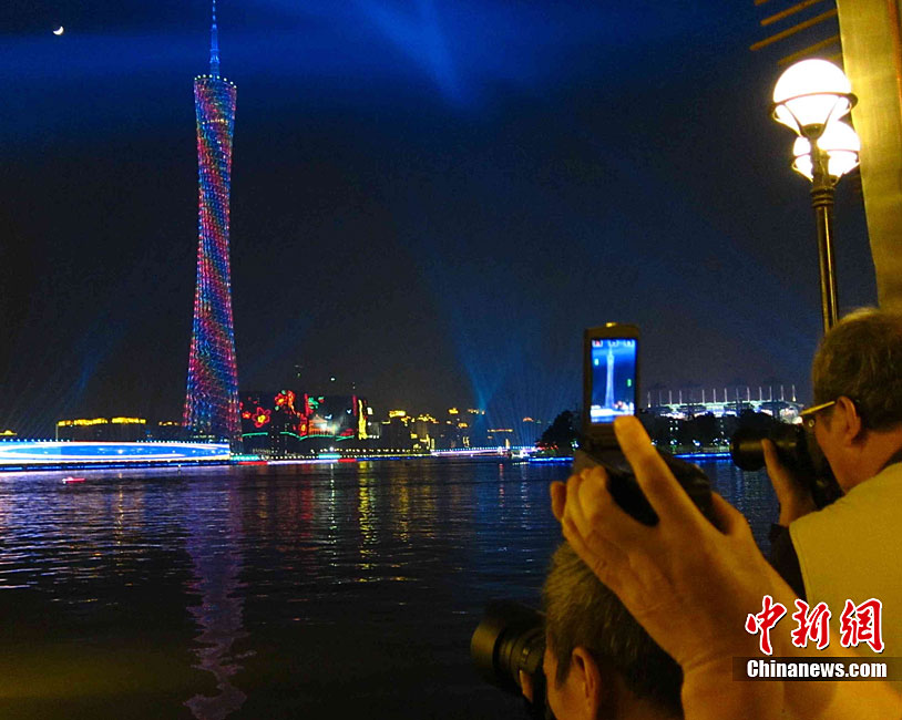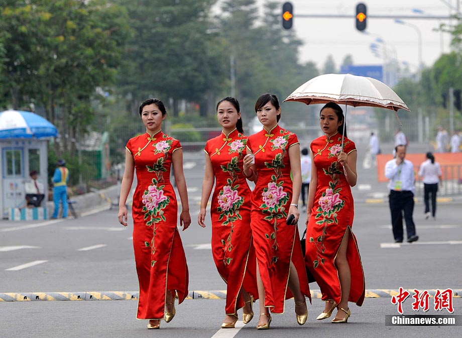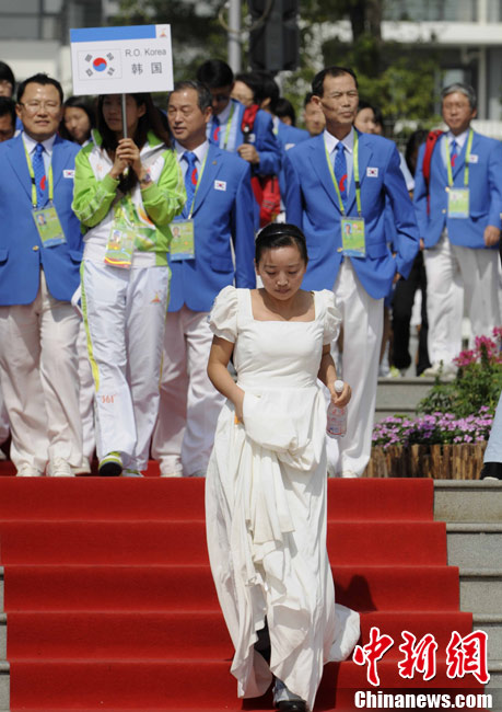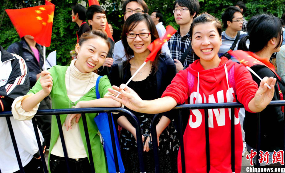 11月11日,著名影星章子怡在廣州大學城參加亞運火炬傳遞。中新社記者 陳文 攝