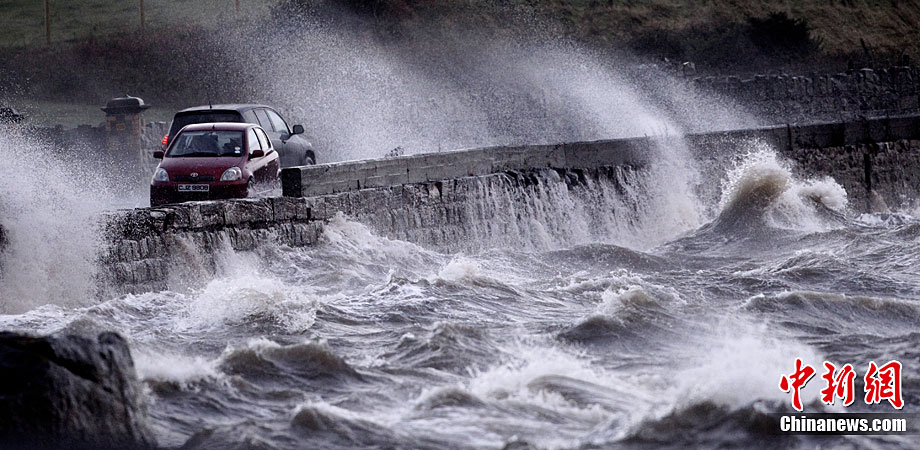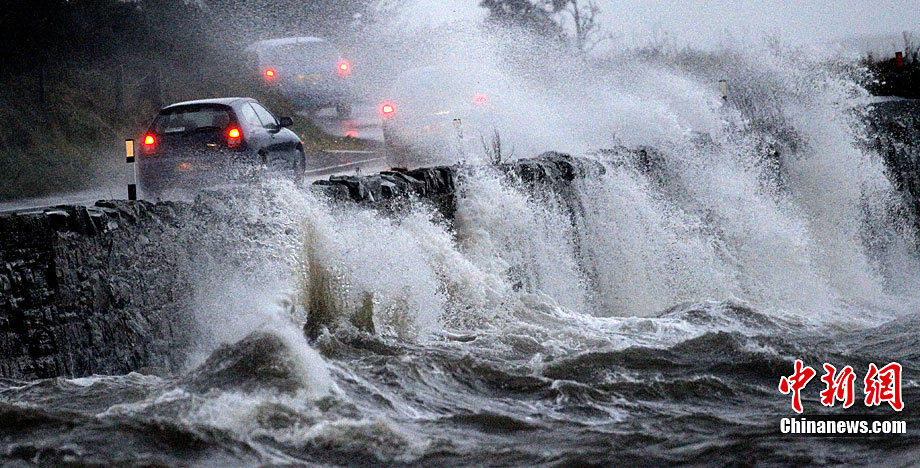 當地時間11月11日,英國和荷蘭沿海地區遭遇狂風暴雨天氣的襲擊。圖為北愛爾蘭沿海地區遭遇狂風暴雨襲擊。