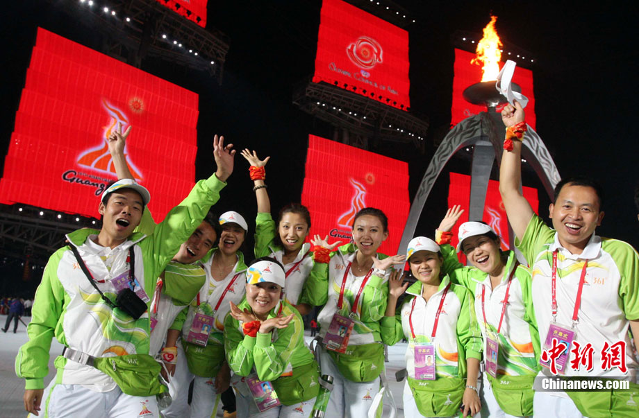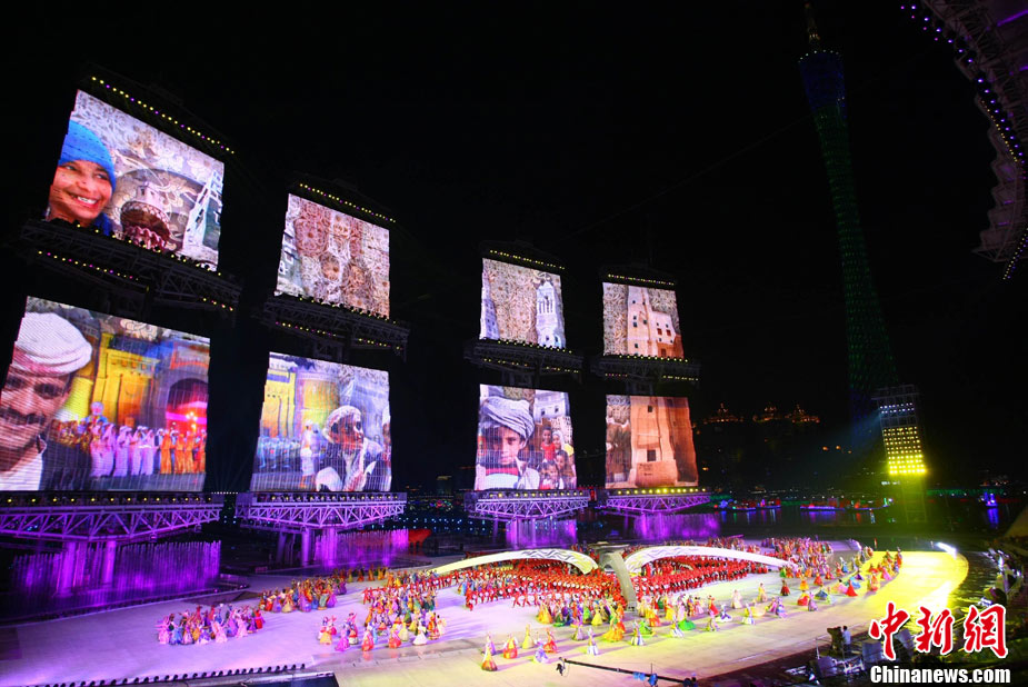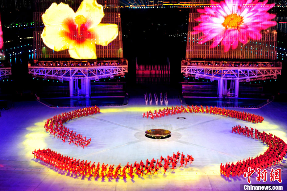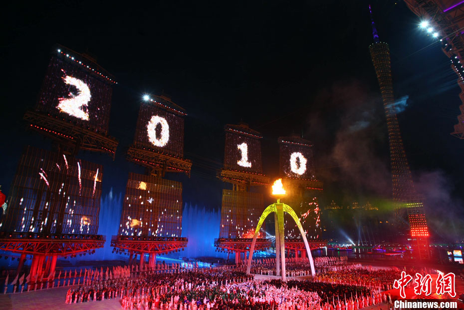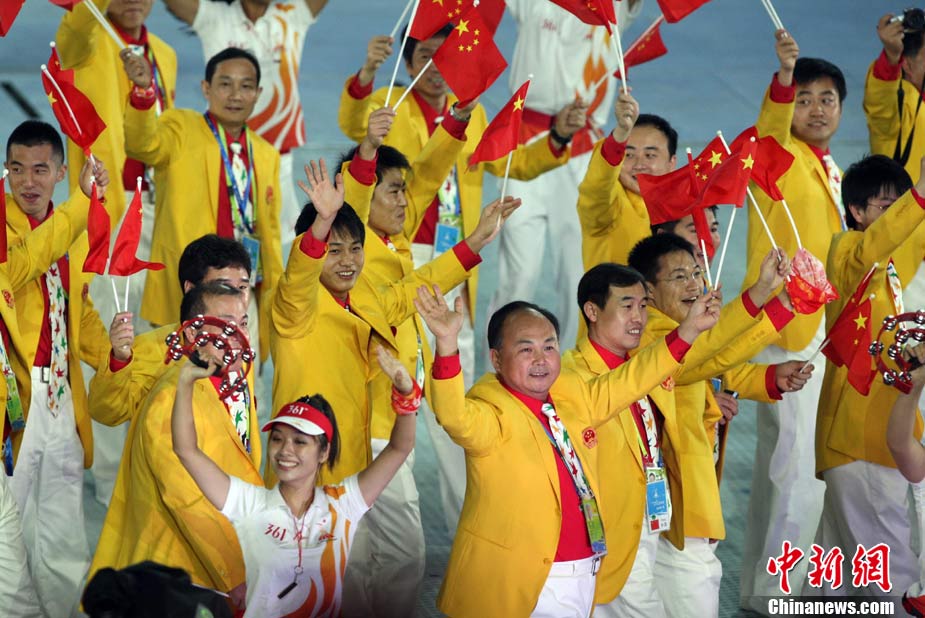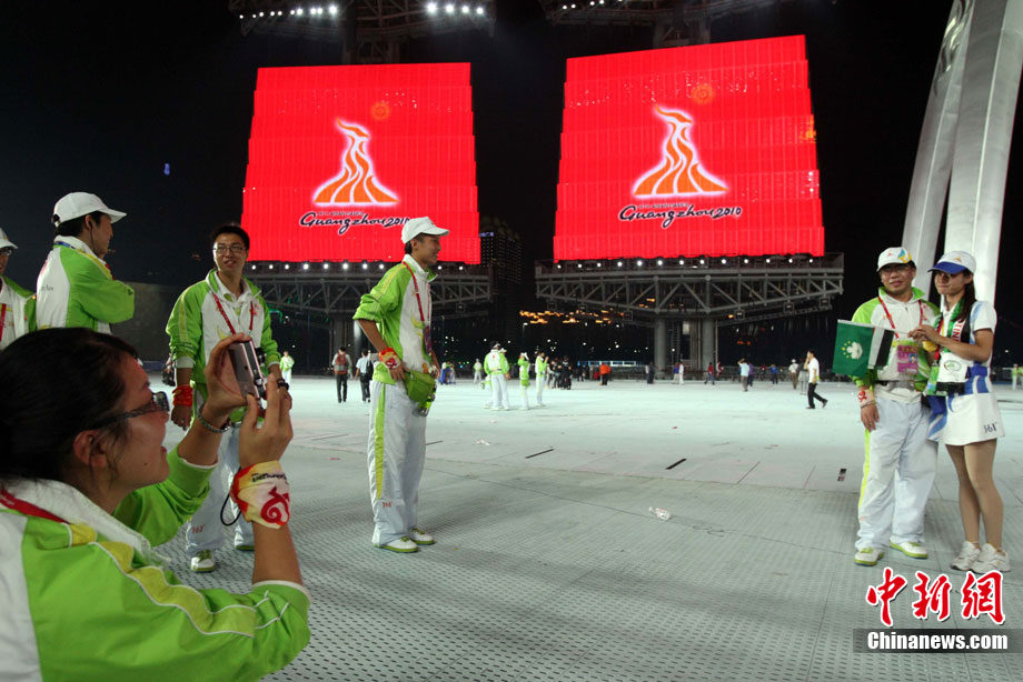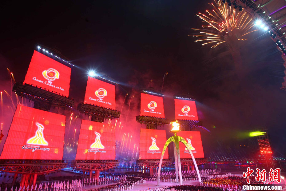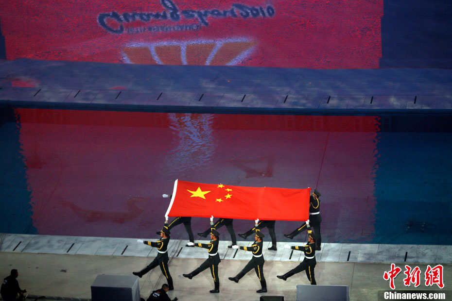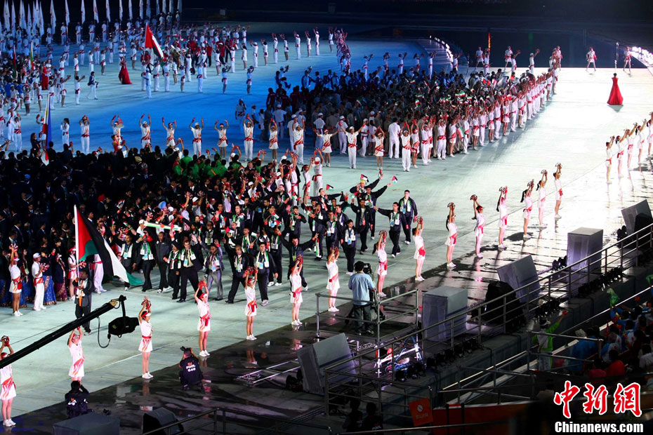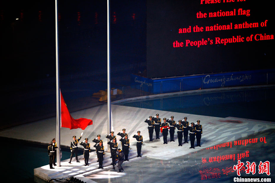 11月12日晚,第16屆廣州亞運會開幕。圖為溫家寶總理在開幕式現場向觀眾揮手致意。中新社記者 盛佳鵬 攝