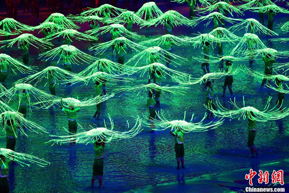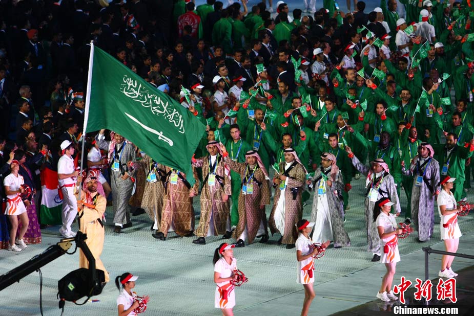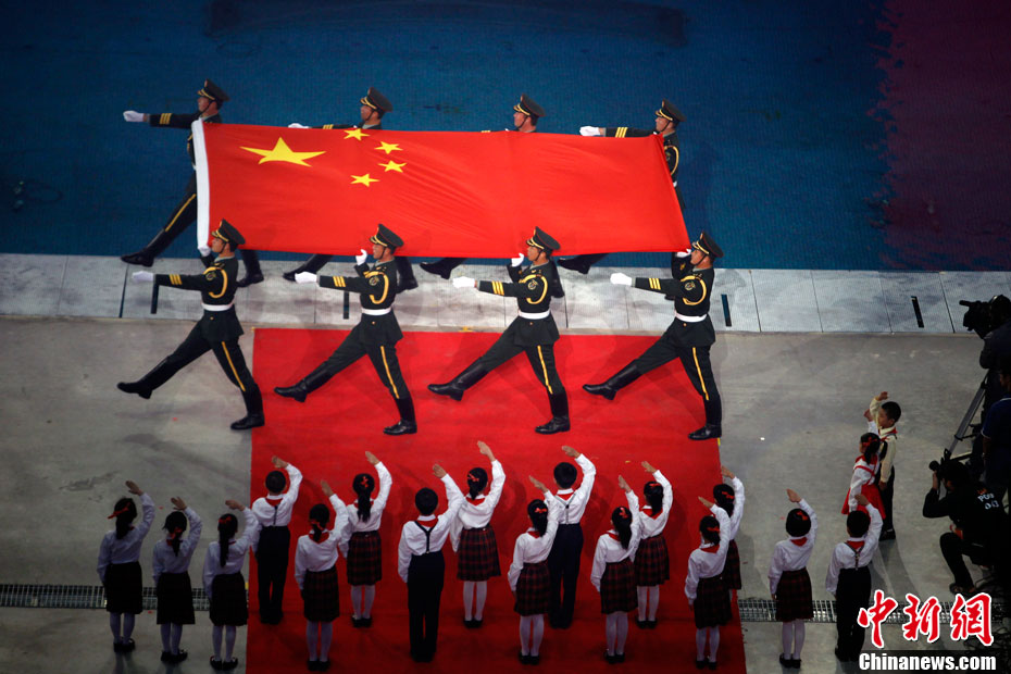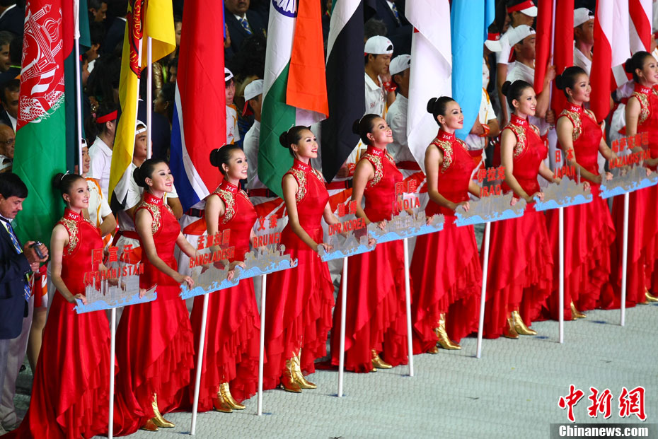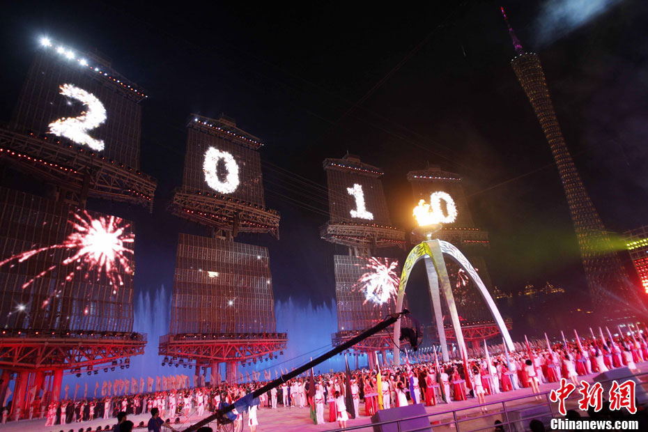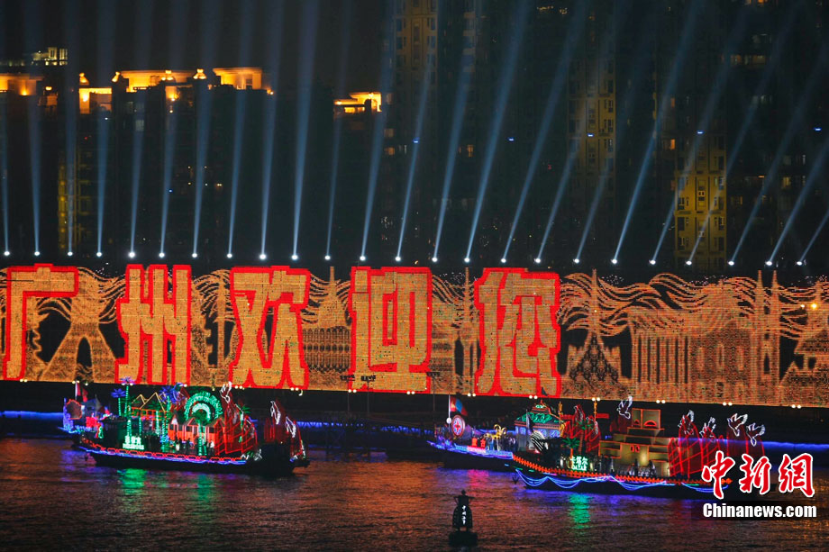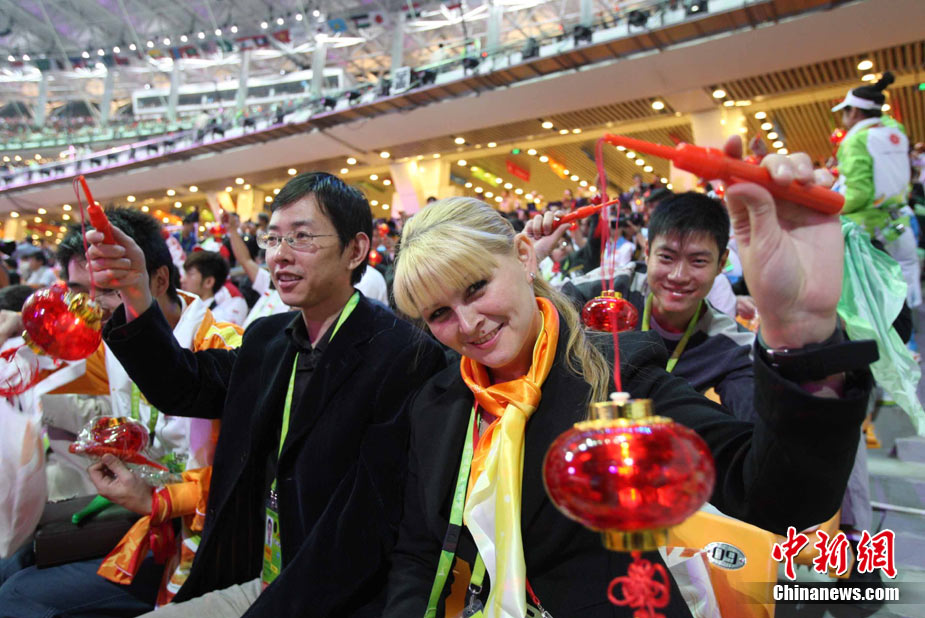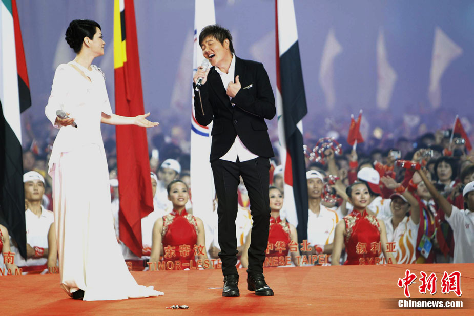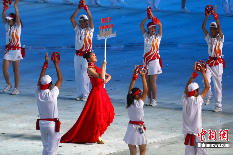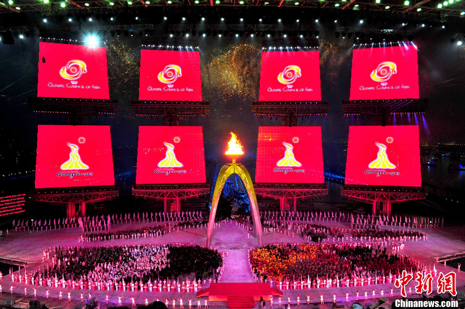 11月12日晚,第16屆廣州亞運會開幕。圖為溫家寶總理在開幕式現場向觀眾揮手致意。中新社記者 盛佳鵬 攝