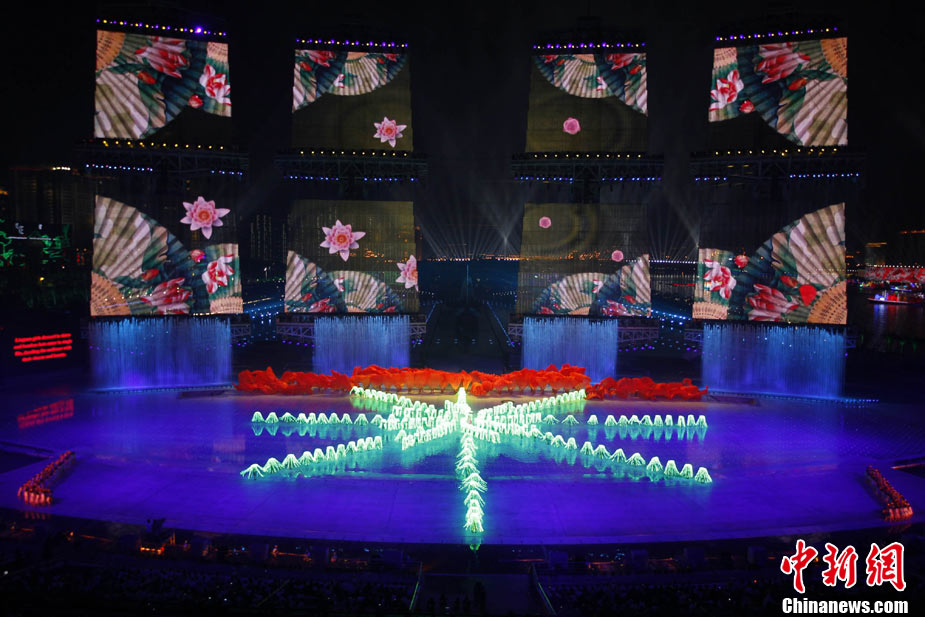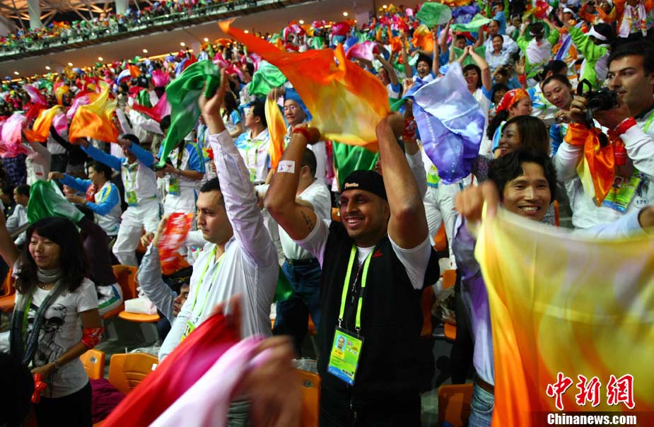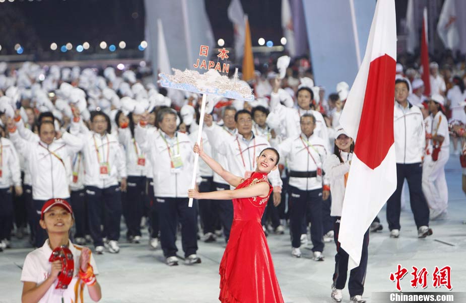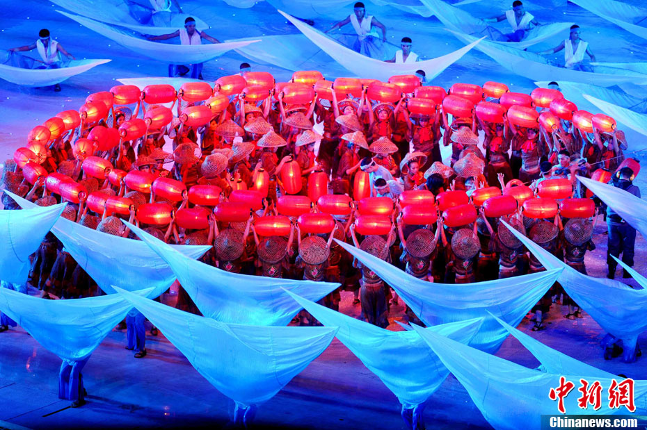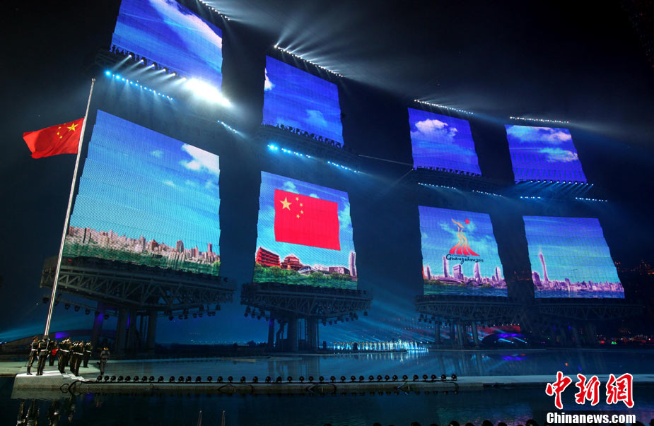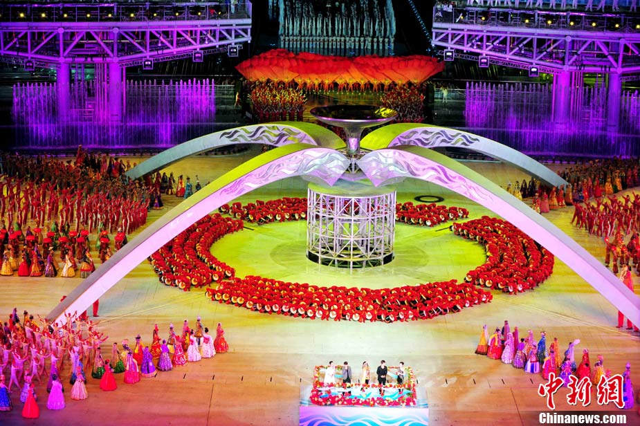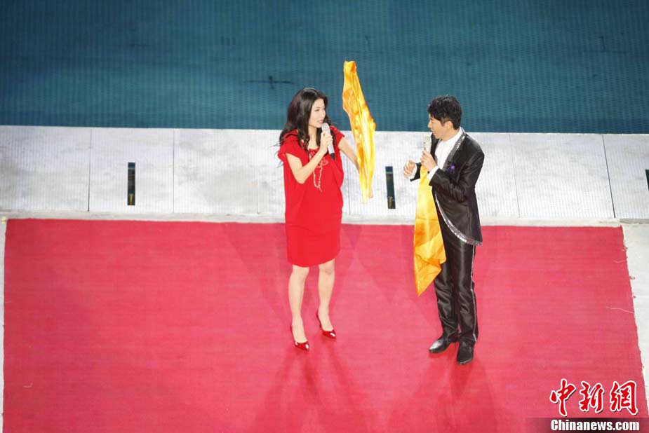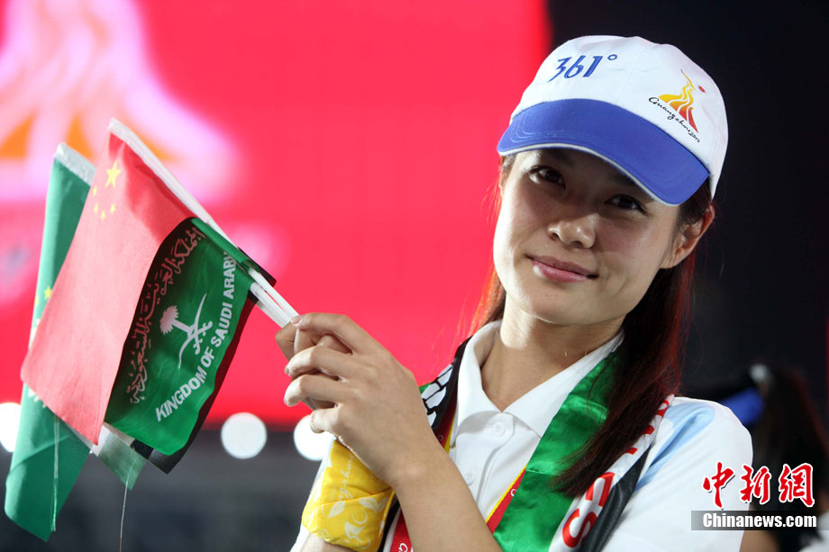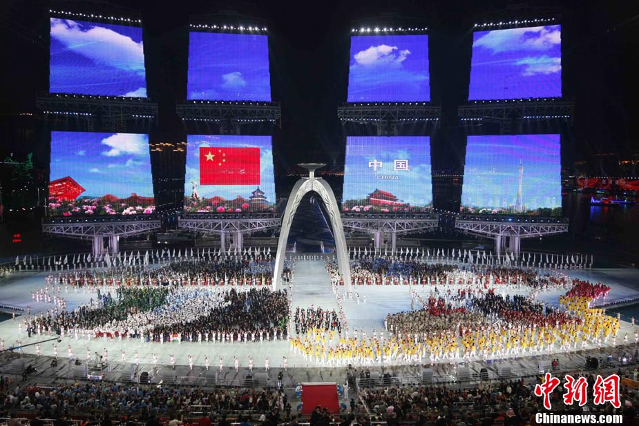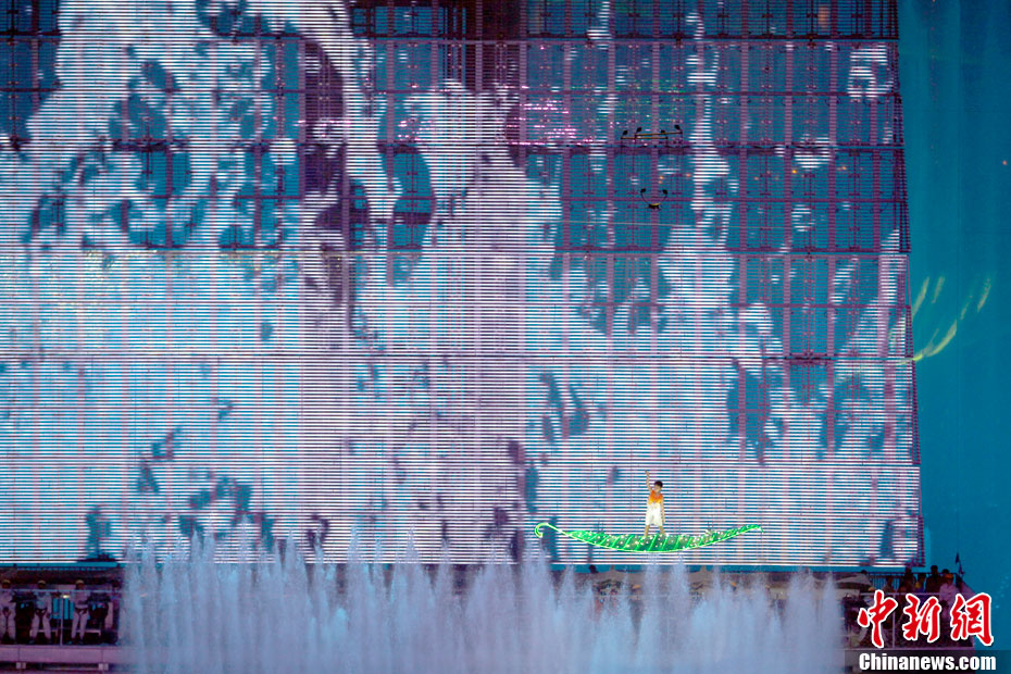 11月12日晚,第16屆廣州亞運會開幕。圖為溫家寶總理在開幕式現場向觀眾揮手致意。中新社記者 盛佳鵬 攝