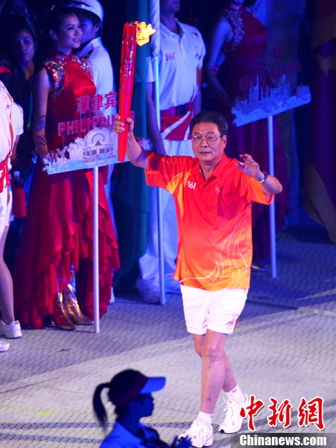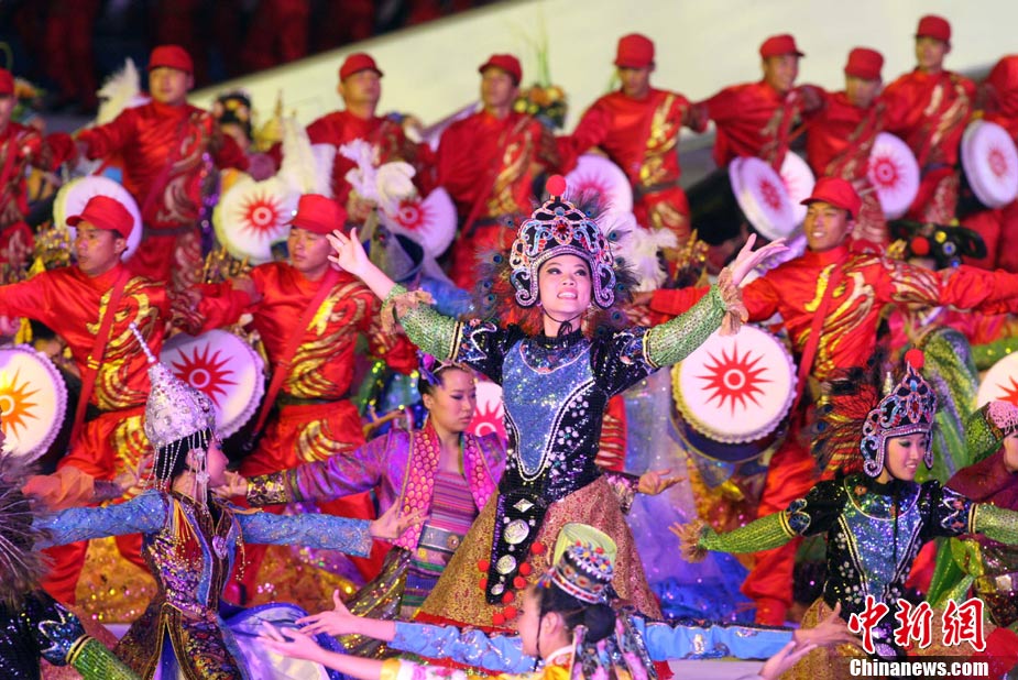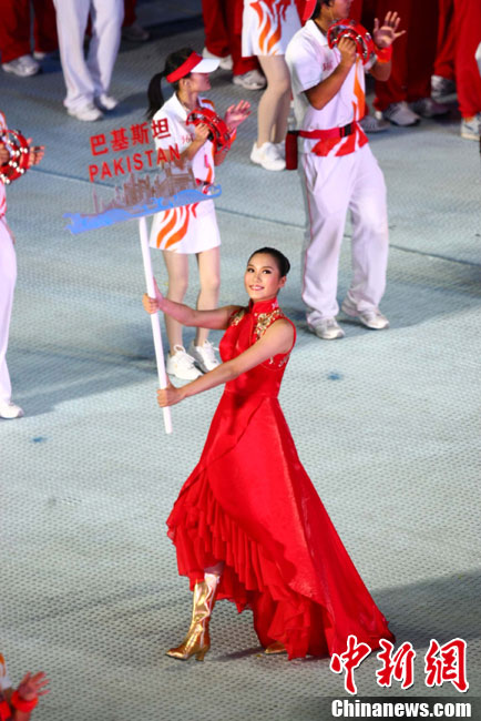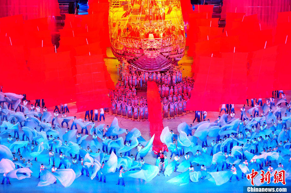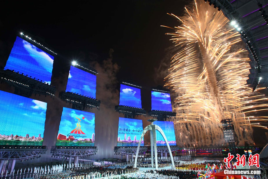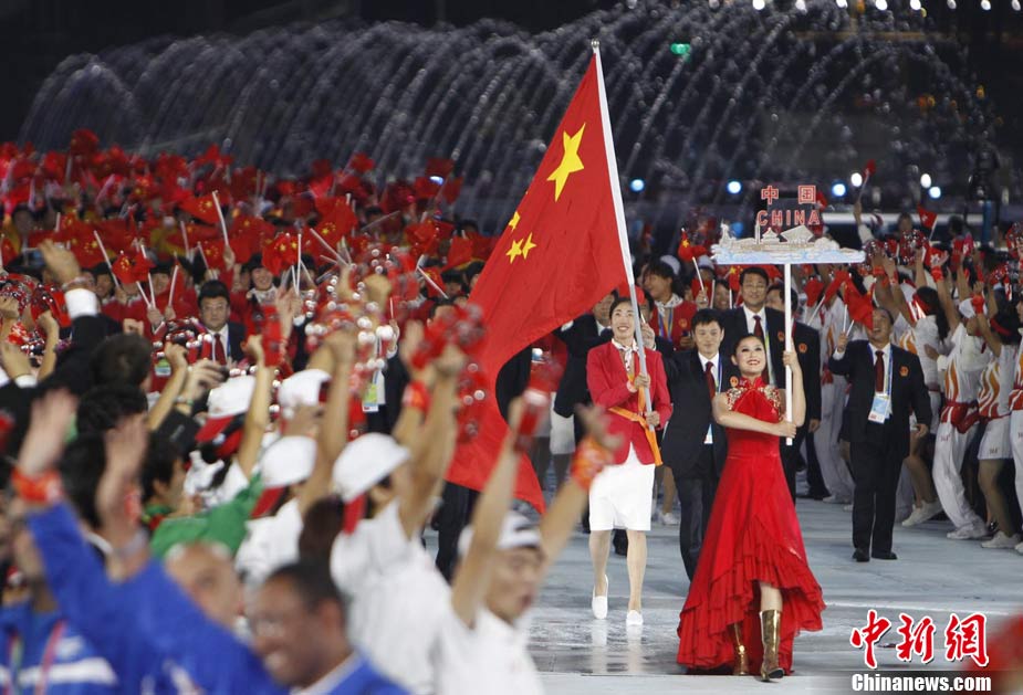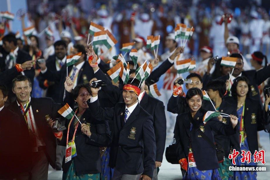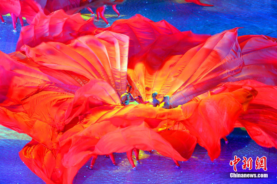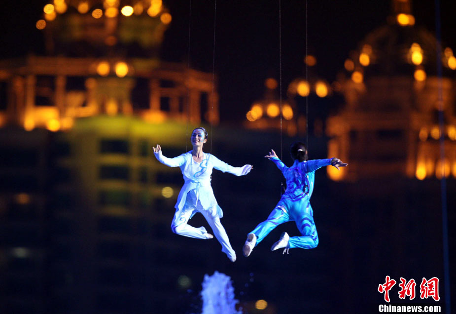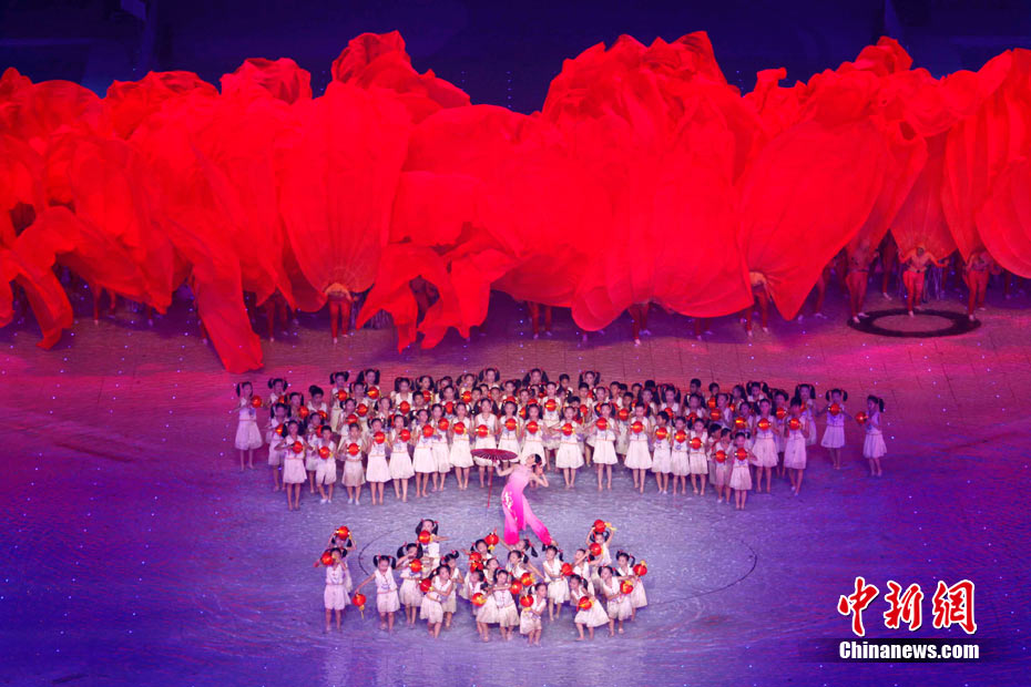 11月12日晚,第16屆廣州亞運會開幕。圖為溫家寶總理在開幕式現場向觀眾揮手致意。中新社記者 盛佳鵬 攝