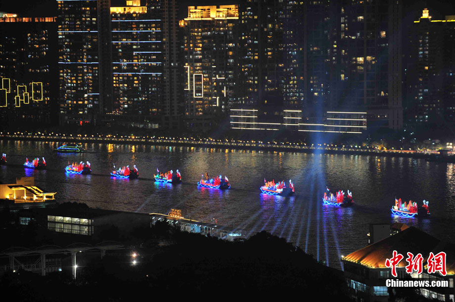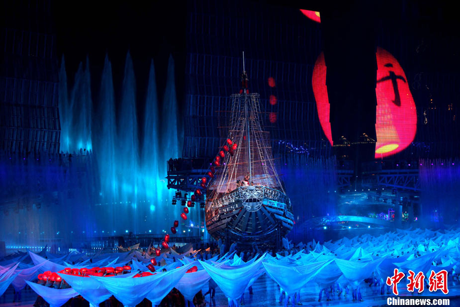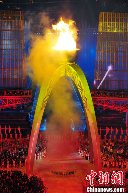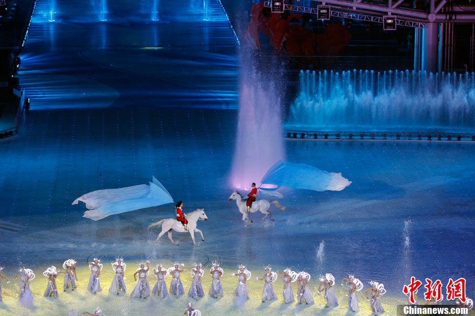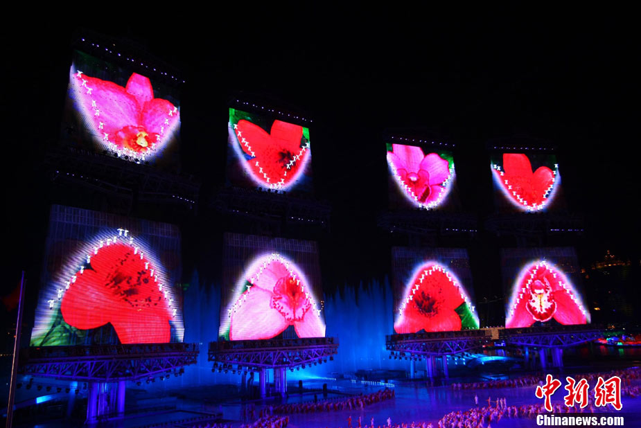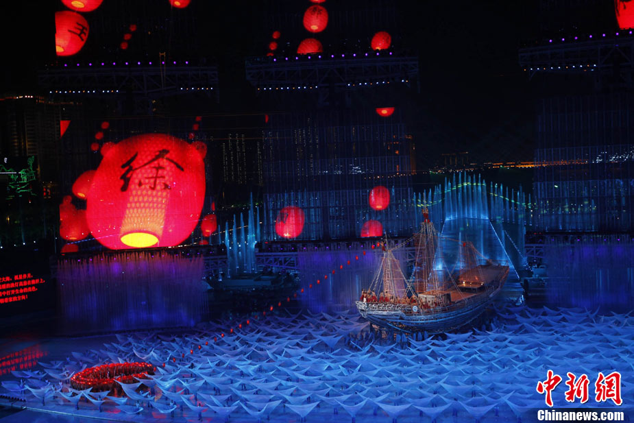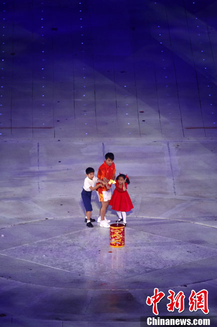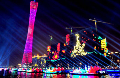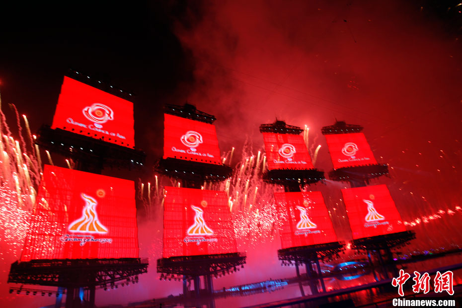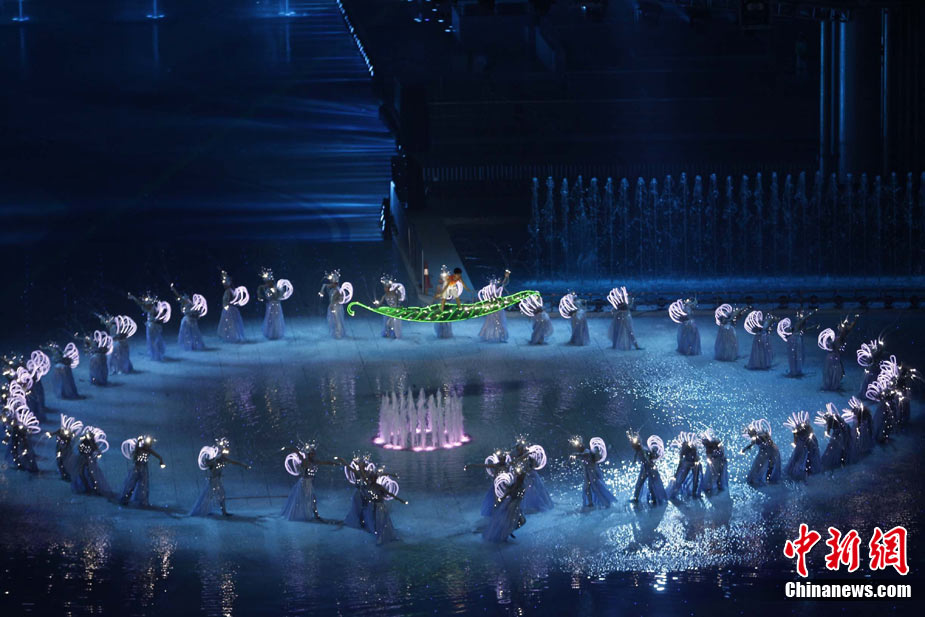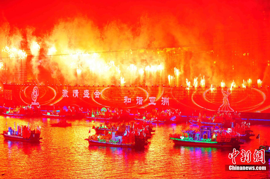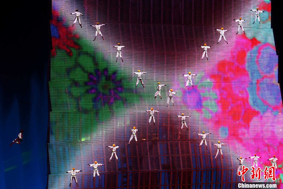 11月12日晚,第16屆廣州亞運會開幕。圖為溫家寶總理在開幕式現場向觀眾揮手致意。中新社記者 盛佳鵬 攝