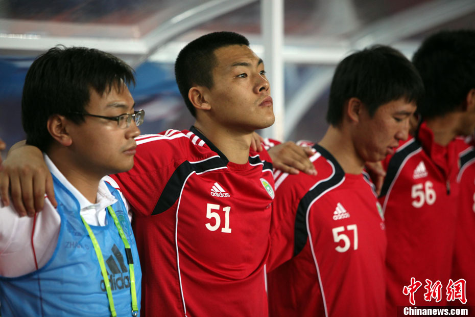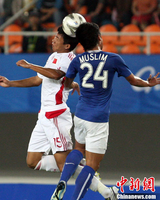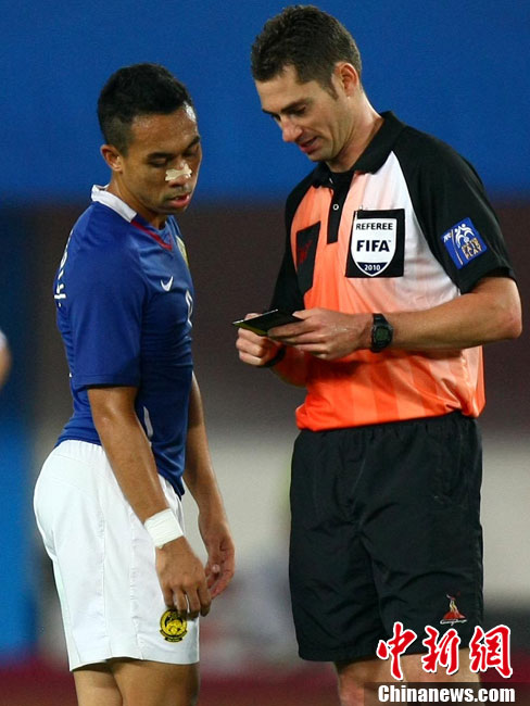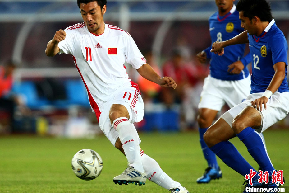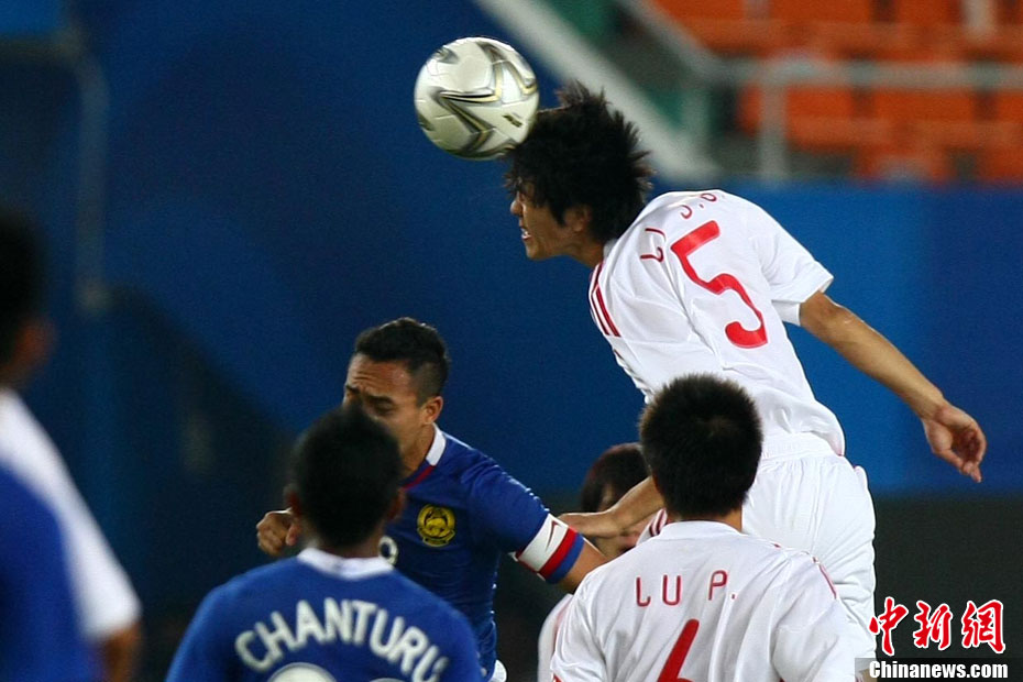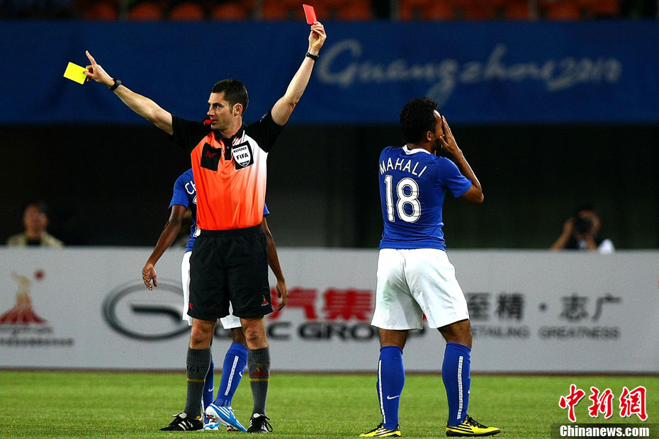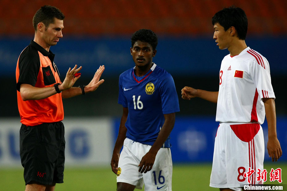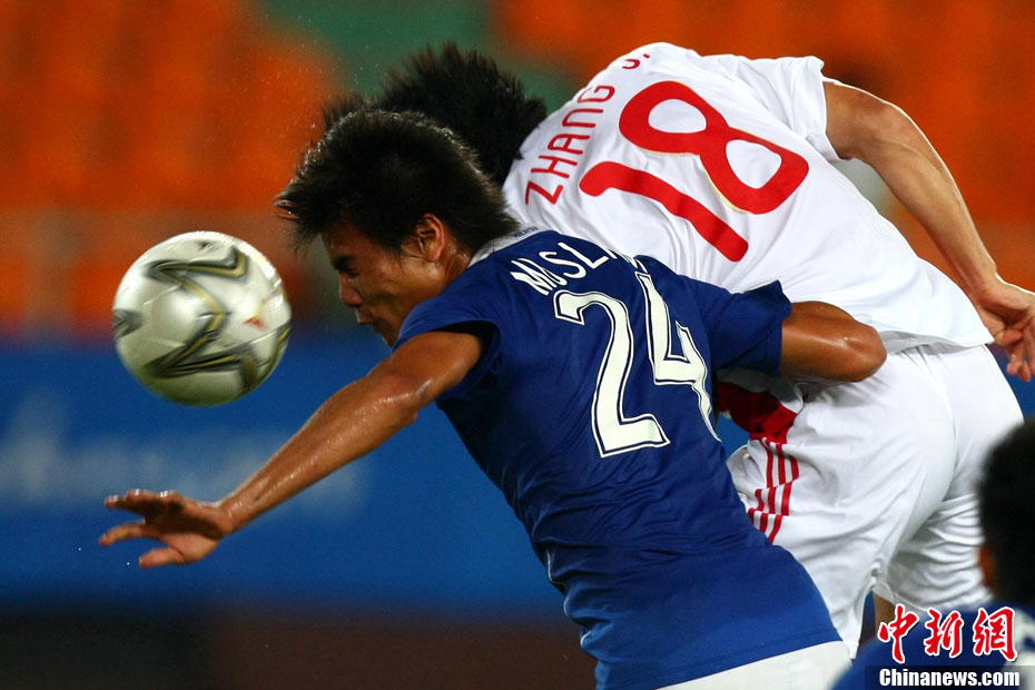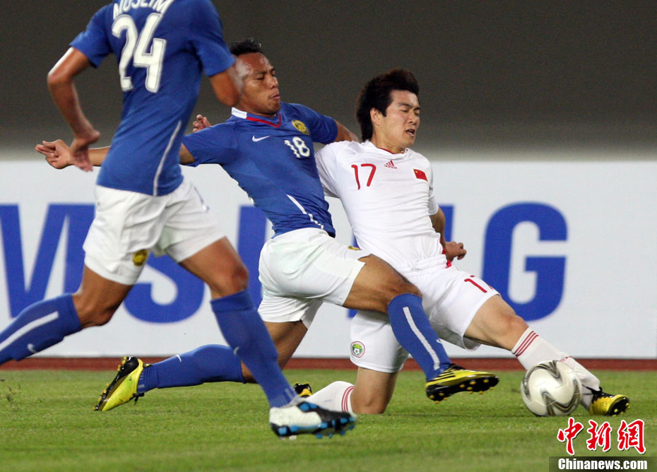 11月13日,在廣州天河體育場進行的亞運會男子足球小組賽A組第31場中國隊對陣馬來西亞的生死之戰,中國隊以3比0戰勝馬來西亞隊小組出線。中新社記者 富田 攝