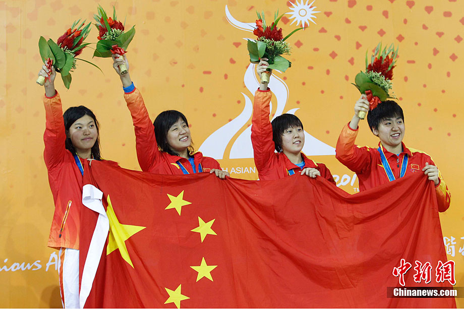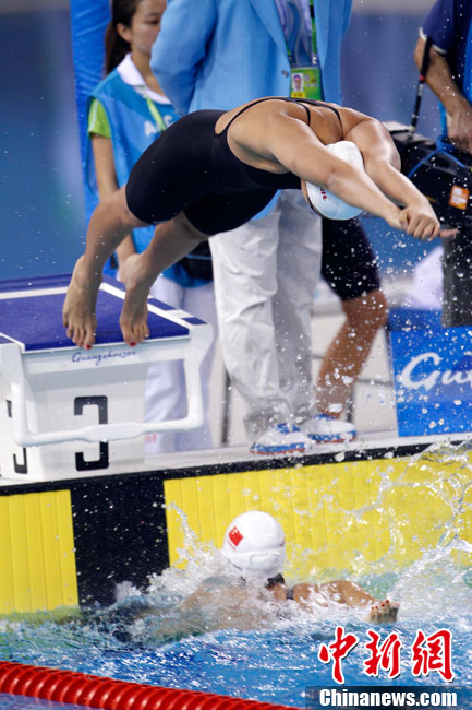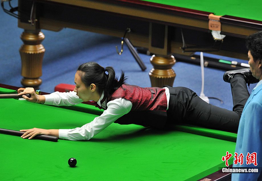 11月14日,中國小將陳思明在廣州亞運會臺球女子斯諾克6紅球團體賽上戰(zhàn)勝泰國對手。中新社記者 賈國榮 攝