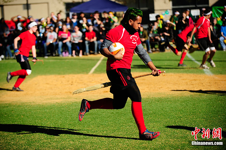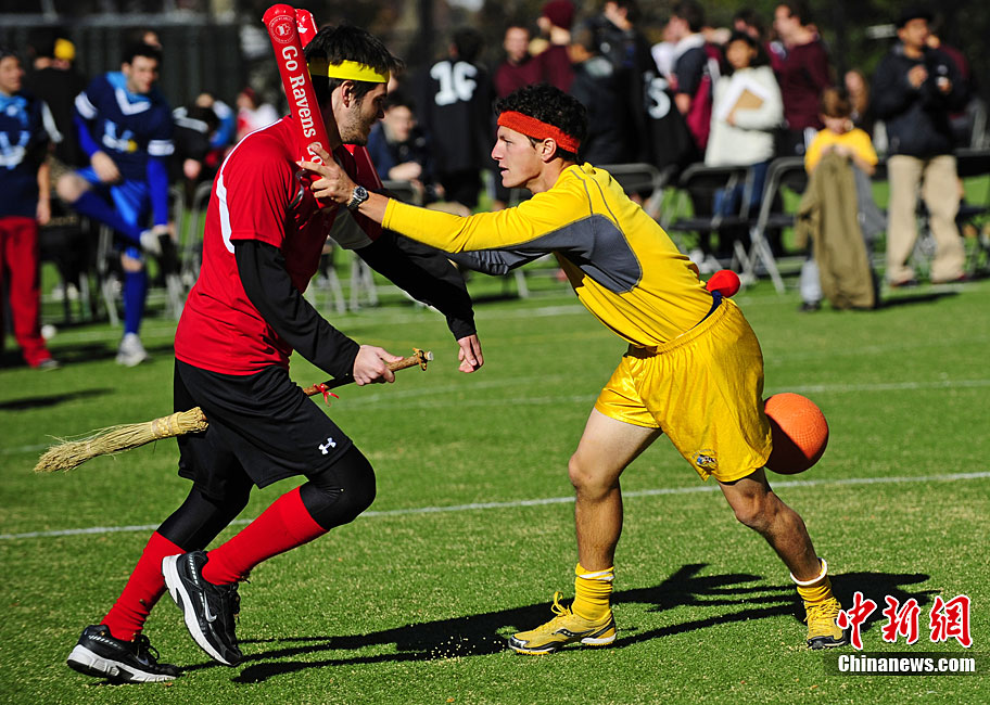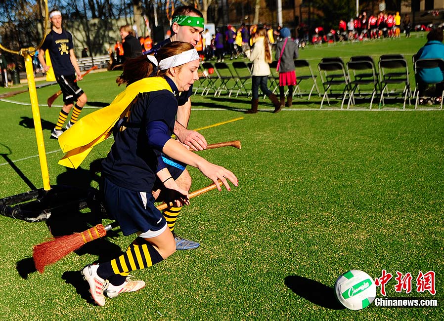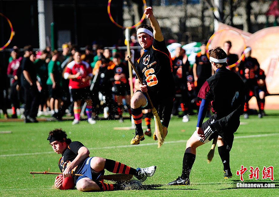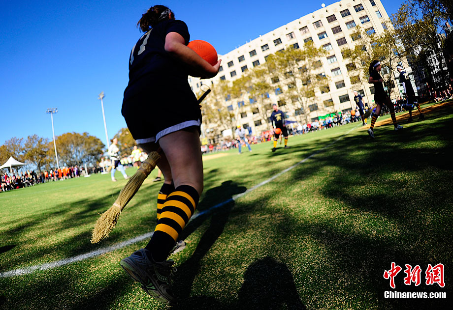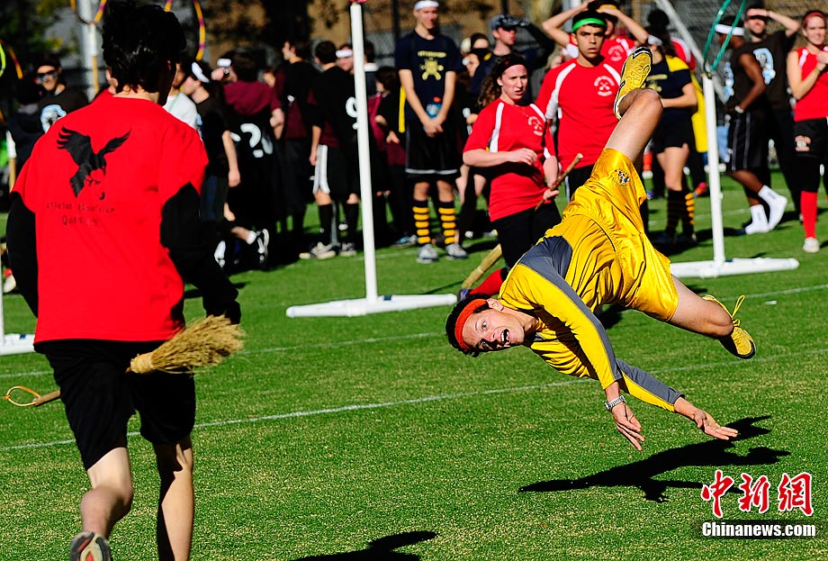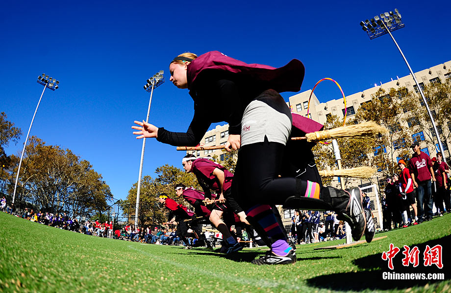 當?shù)貢r間11月13日,數(shù)百名哈利波特迷們在美國紐約舉行了第四屆魁地奇世界杯比賽。看過《哈利·波特》小說或電影的人都會對其中描寫的魁地奇球賽印象深刻。現(xiàn)實版的魁地奇比賽嚴格遵循原著風格,并發(fā)展成了一項混合手球、躲避球,還摻雜了一點曲棍球的新奇運動。