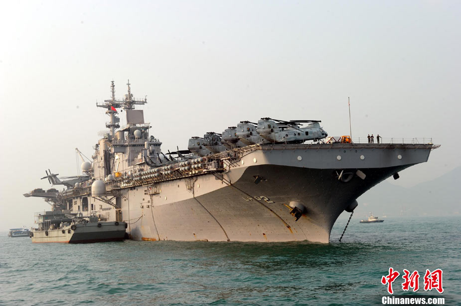 11月16日,美國海軍黃蜂級(jí)埃塞克斯號(hào)兩棲攻擊艦,停靠香港進(jìn)行補(bǔ)給。該艦搭載有AV-8B“鷂”式戰(zhàn)機(jī)、CH-53E“海上種馬”直升機(jī)、CH-46E“海上騎士”直升機(jī)、UH-1N超級(jí)休伊直升機(jī)等逾30架各型機(jī)型。中新社記者 鄭祚聲 攝