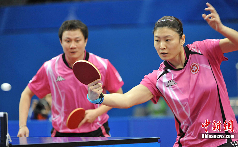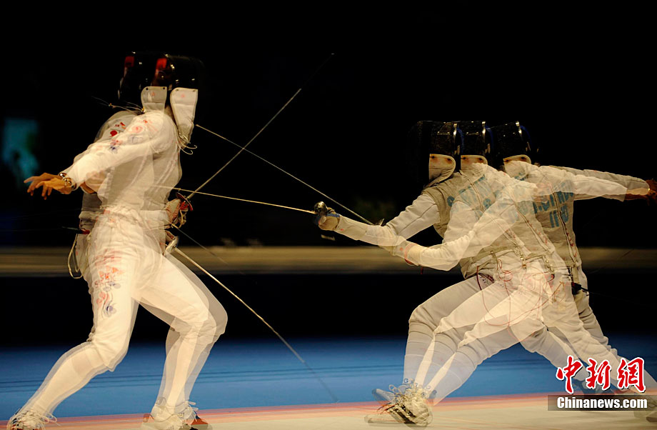 11月19日,中國花游雙人組合蔣婷婷、蔣文文亮相廣州,參加亞運會花游比賽。中新社記者 杜洋 攝