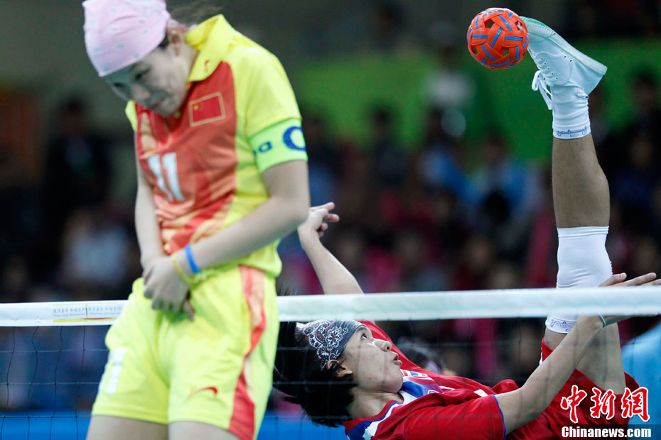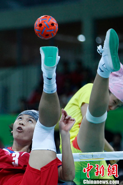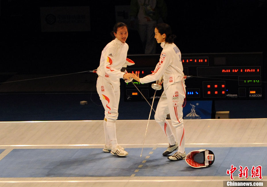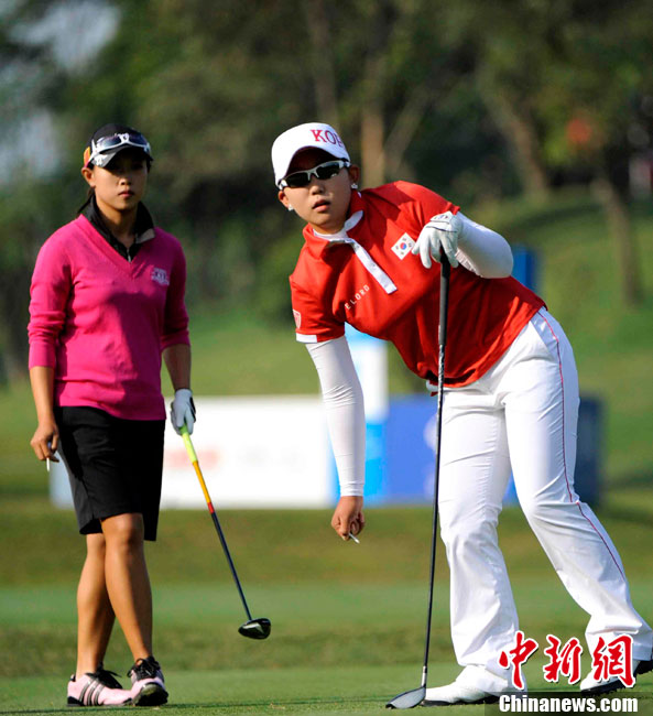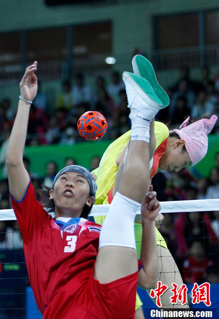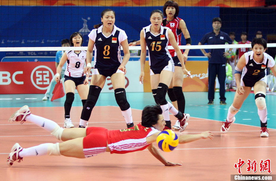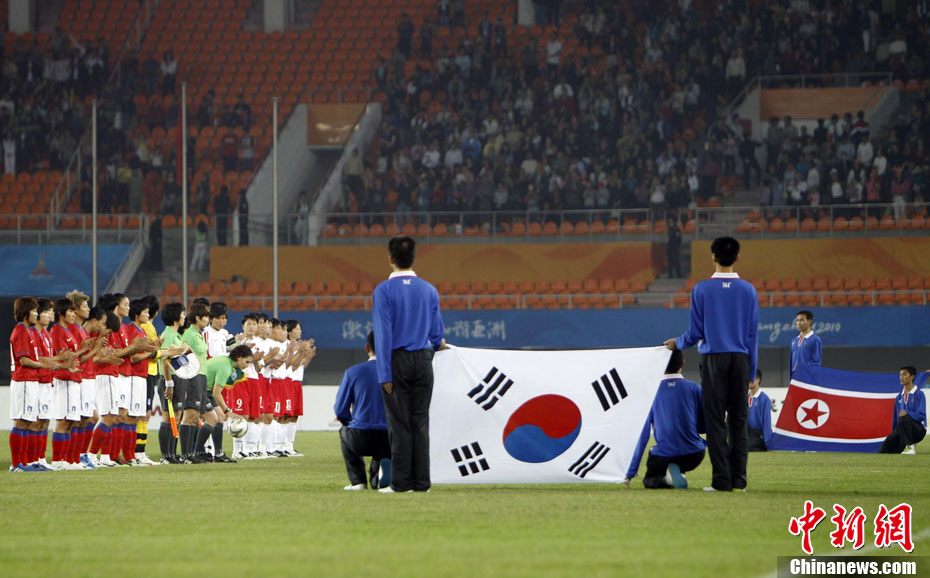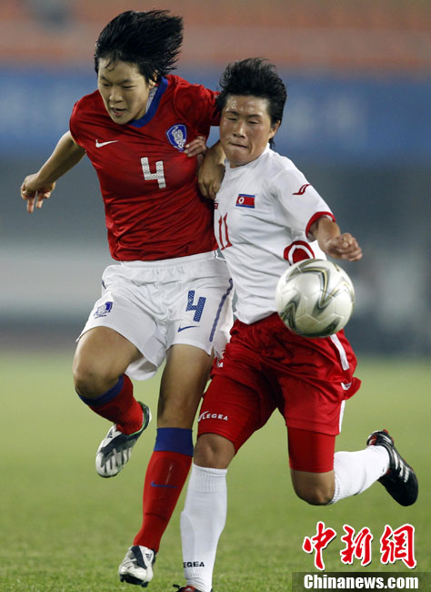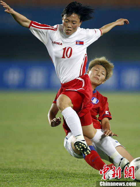 11月20日,在廣州亞運會女足半決賽的比賽中,中國女足(紅衣)0:1惜敗日本隊,無緣決賽。 中新社記者 杜洋 攝