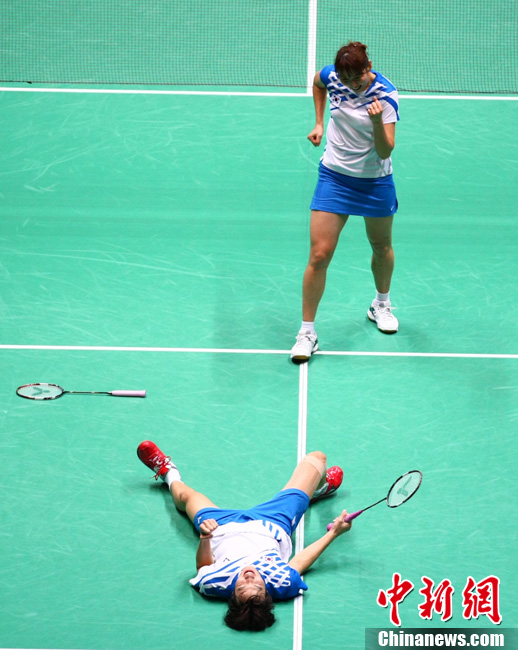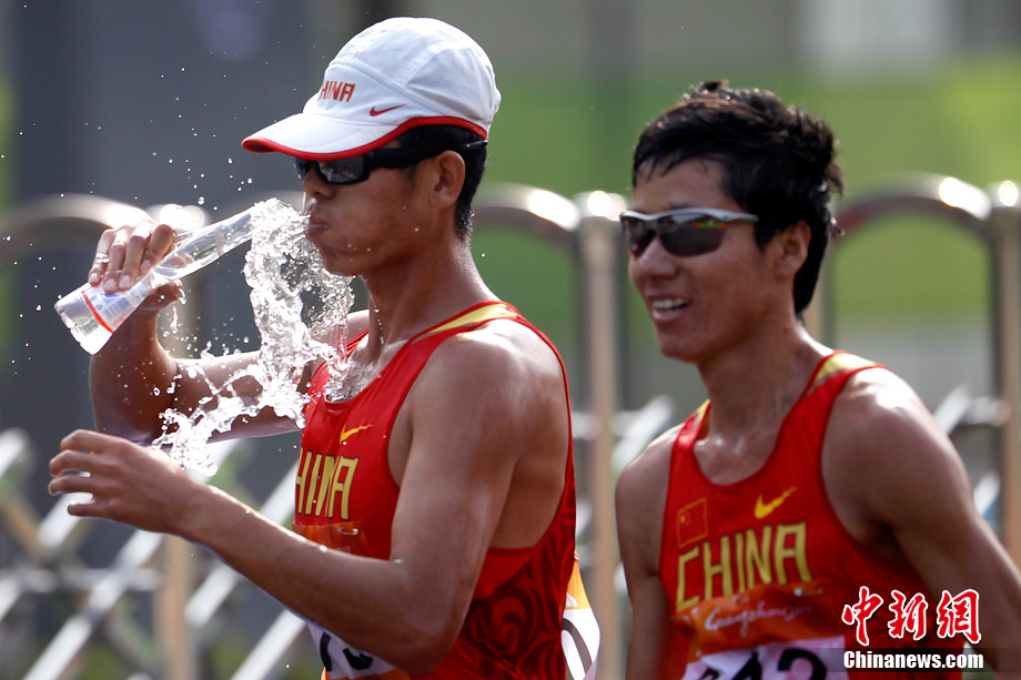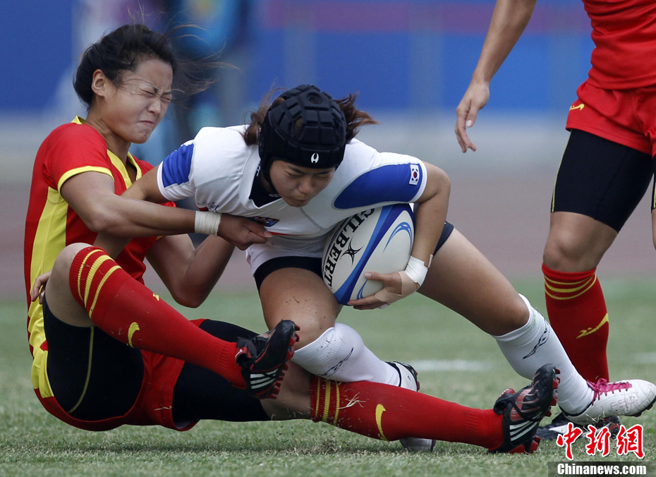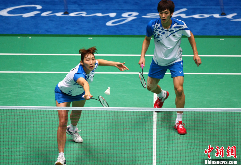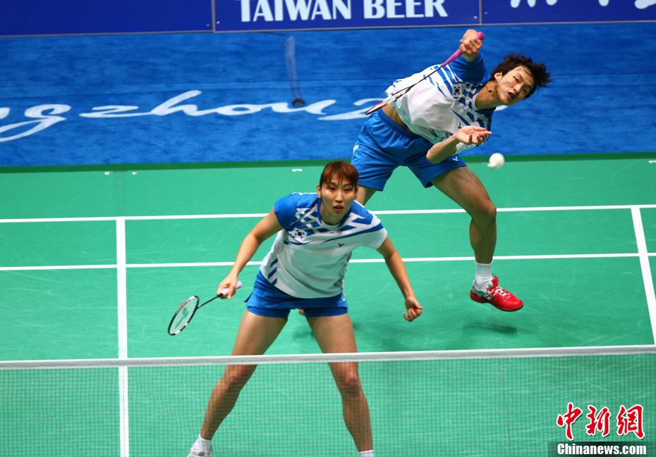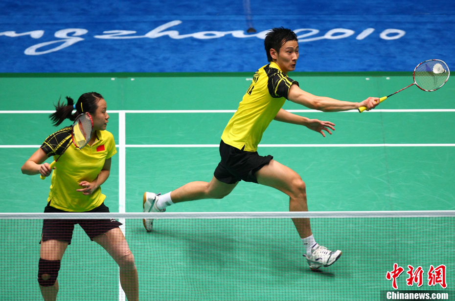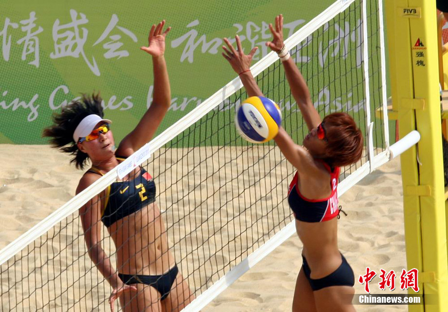 11月21日,張希(左)在比賽中扣球。當天,中國組合薛晨/張希在亞運沙排四分之一決賽中碰上中華臺北隊,在費時46分鐘后,薛晨/張希以2:1逆轉對手獲勝,順利晉級半決賽。 中新社記者 鄧霞 攝