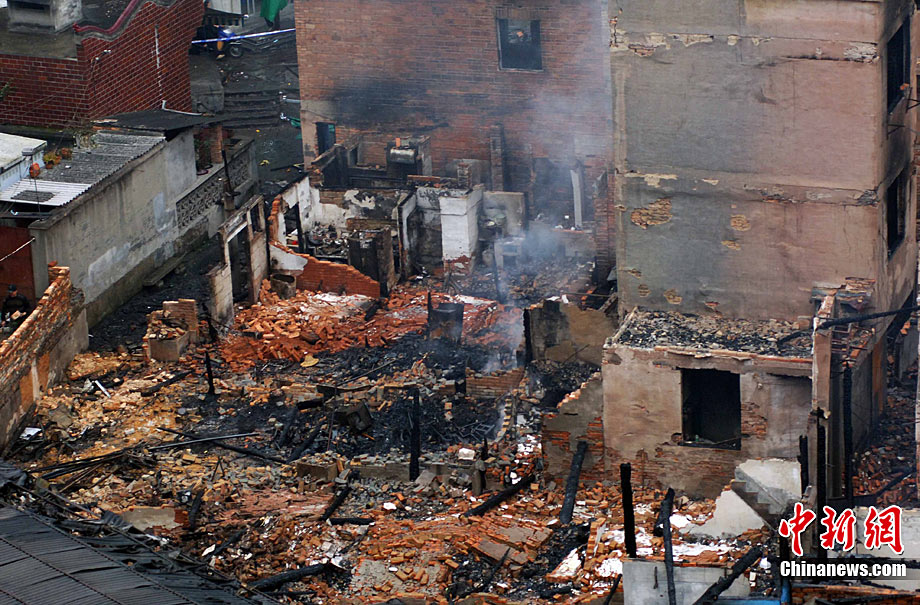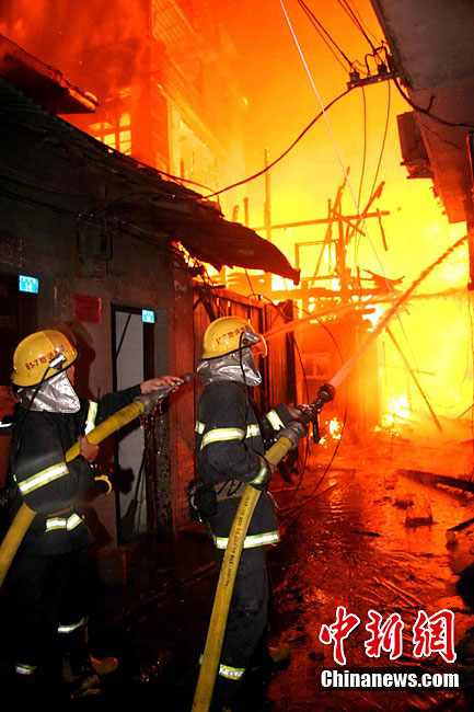 2010年11月21日晚近22時,福州臺江區新港街道中選社區附近一片民房發生火災,由于該民房附近主要為棚屋結構,大火迅速蔓延,燃燒一個多小時,火勢非常猛烈。劉影 攝 圖片來源:CFP視覺中國