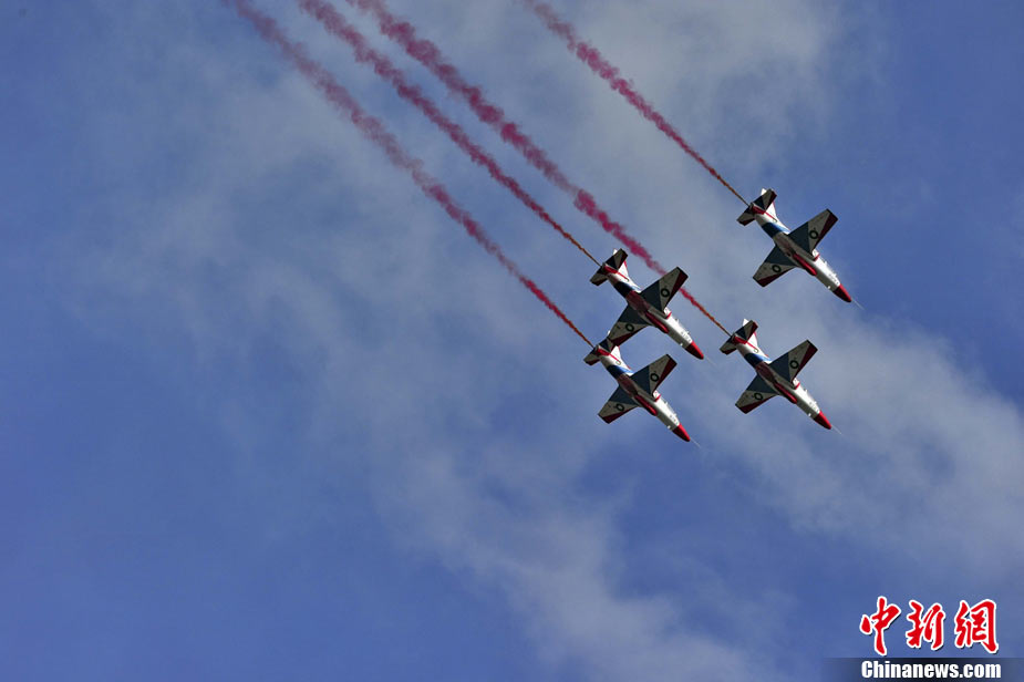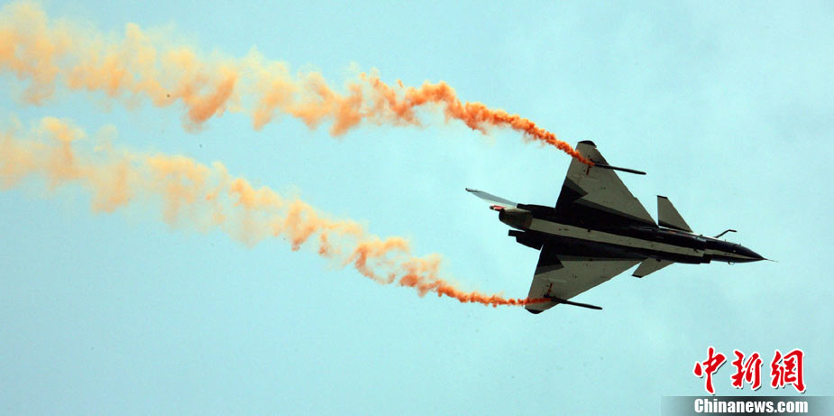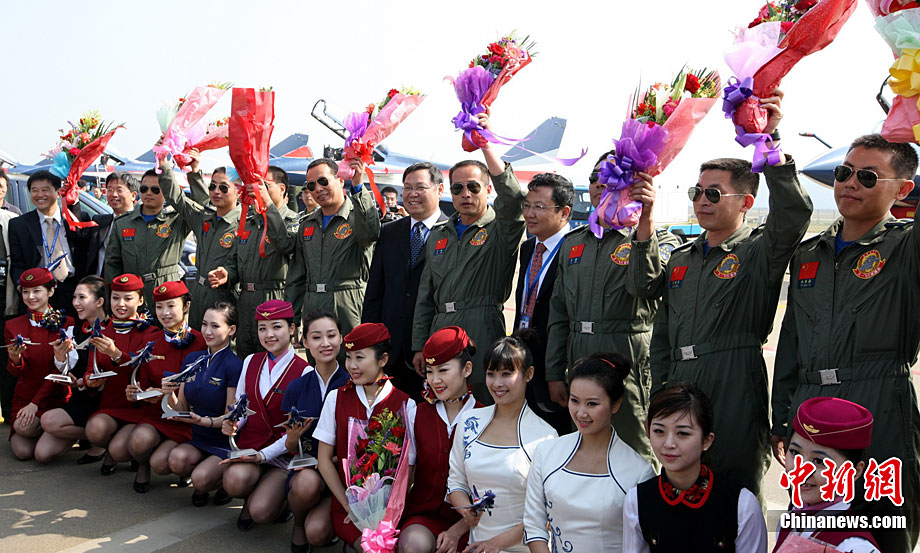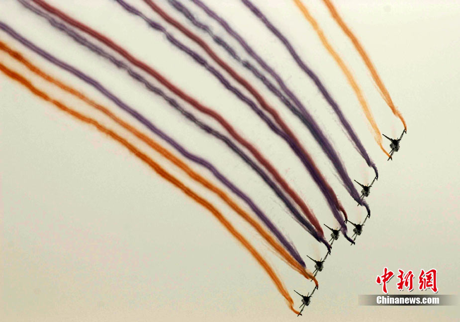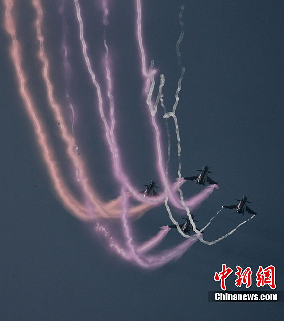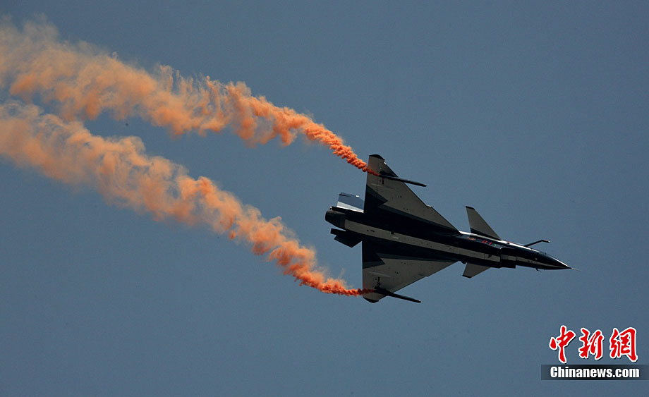 11月21日,為期6天的第八屆中國國際航空航天博覽會在珠海落幕。圖為中國空軍八一飛行表演隊表演結(jié)束后,機務(wù)人員試車作準(zhǔn)備飛行工作。 中新社發(fā) 譚超 攝