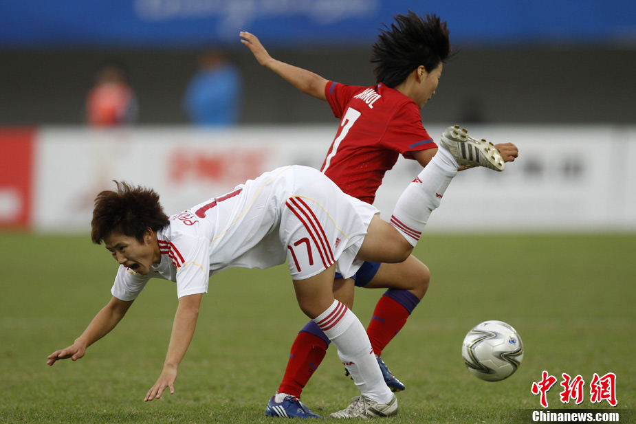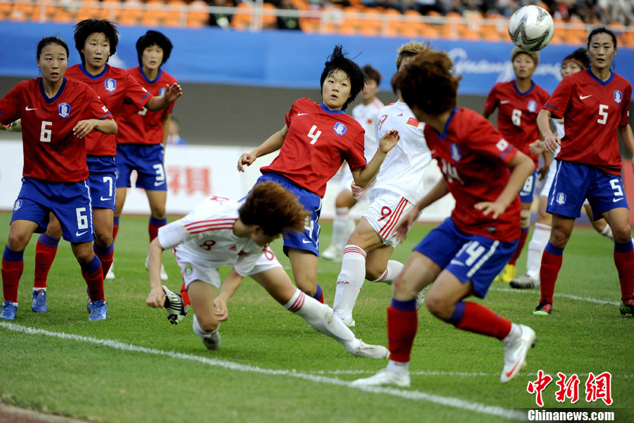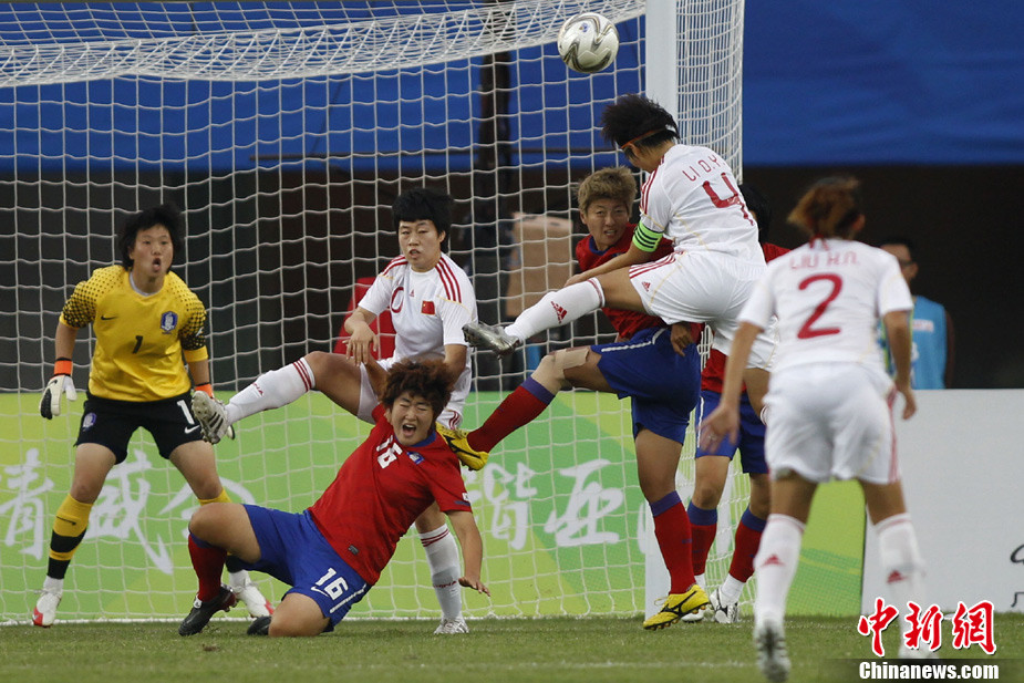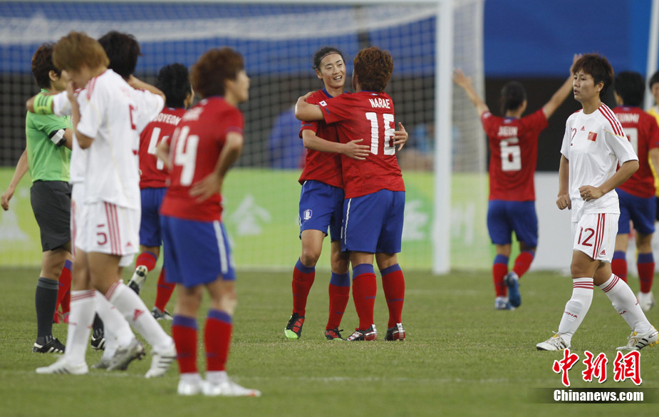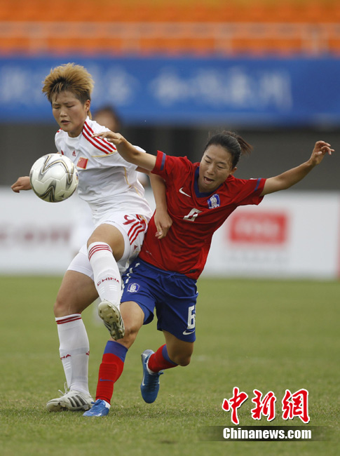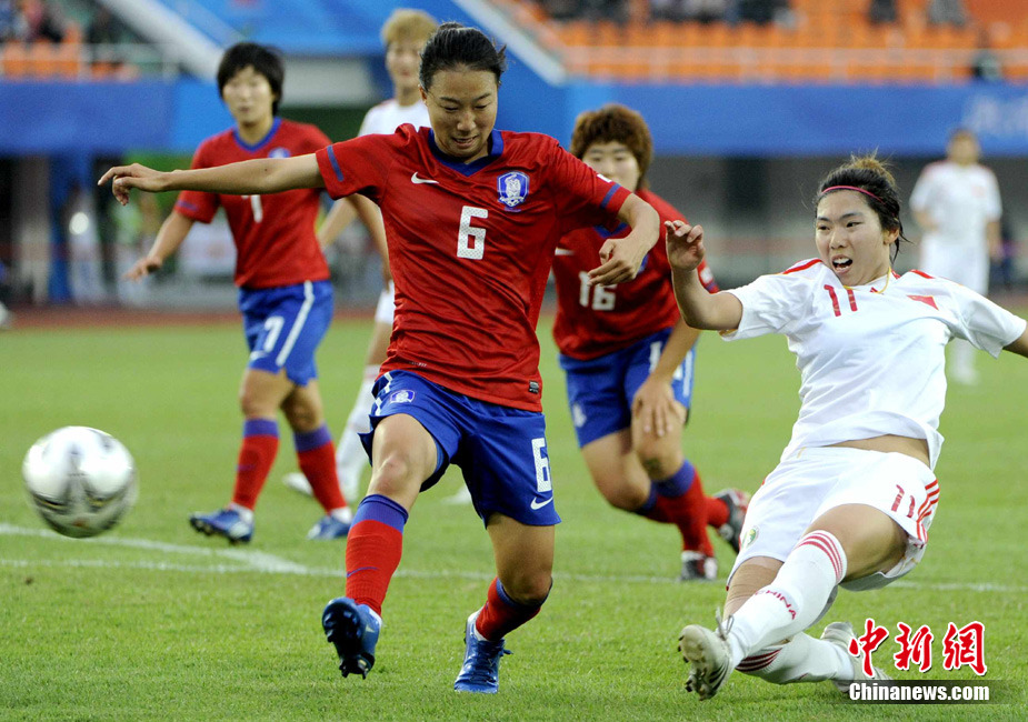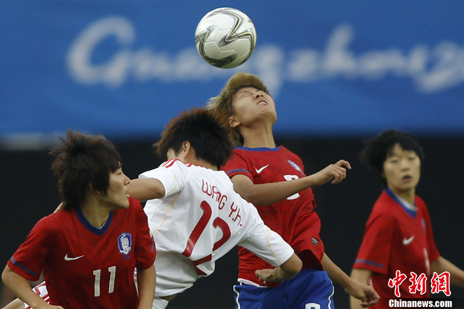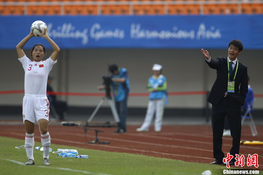 11月22日,廣州亞運會女足銅牌爭奪戰在中國與韓國之間展開,最終韓國2:0戰勝中國,獲得銅牌,中國無緣獎牌。圖為中國隊主教練李霄鵬(右)在場邊指揮。中新社記者 盛佳鵬 攝