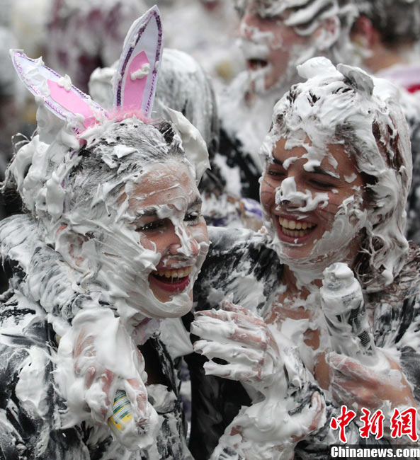 英國名校大學(xué)生舉行“泡沫大戰(zhàn)”