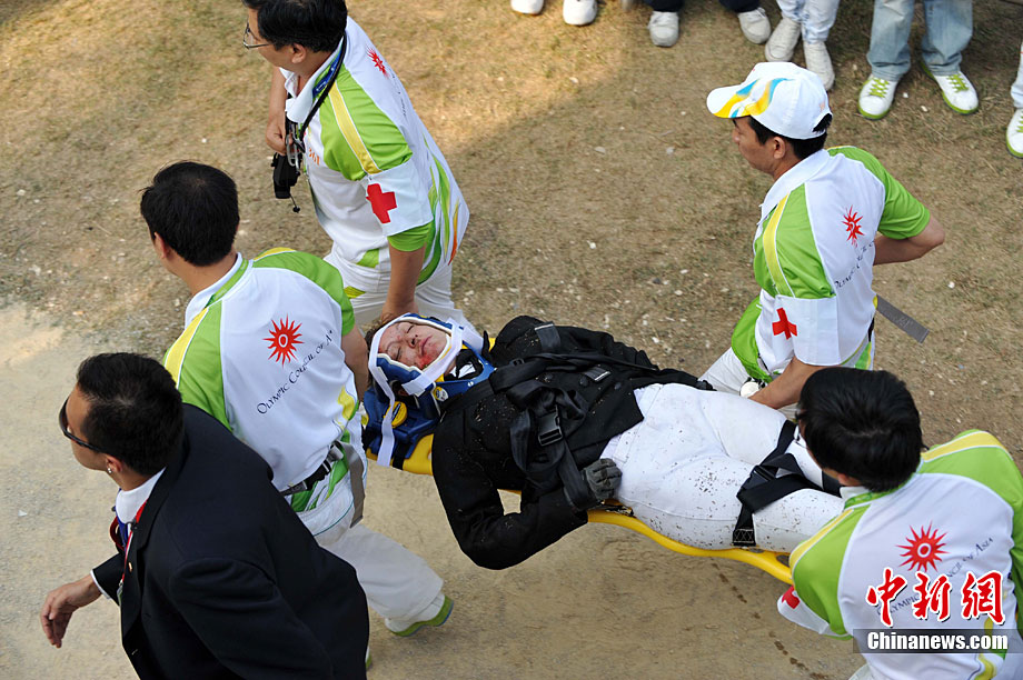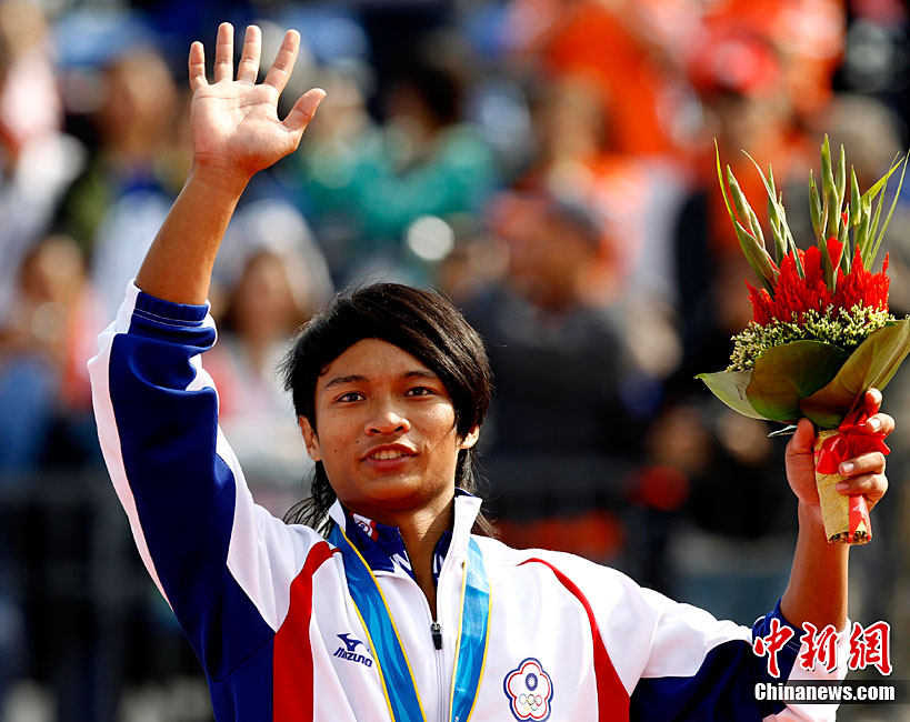 第十六屆廣州亞運會11月23日進行了輪滑男子300米比賽,中華臺北選手宋青陽奪得該項目冠軍。中新社記者 趙振清 攝