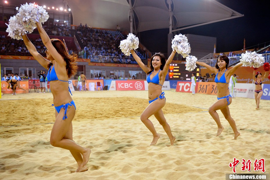 11月24日晚,廣州亞運會沙排比賽完美落幕。青春時尚的沙排寶貝給人留下深刻印象,她們用熱情點燃現場觀眾的激情,水手裝、海軍帽、藍色海洋比基尼加上性感熱舞謀殺菲林無數,令人血脈噴張!讓我們再一次重溫“沙排寶貝”的各種性感造型。中新網記者 金碩 攝